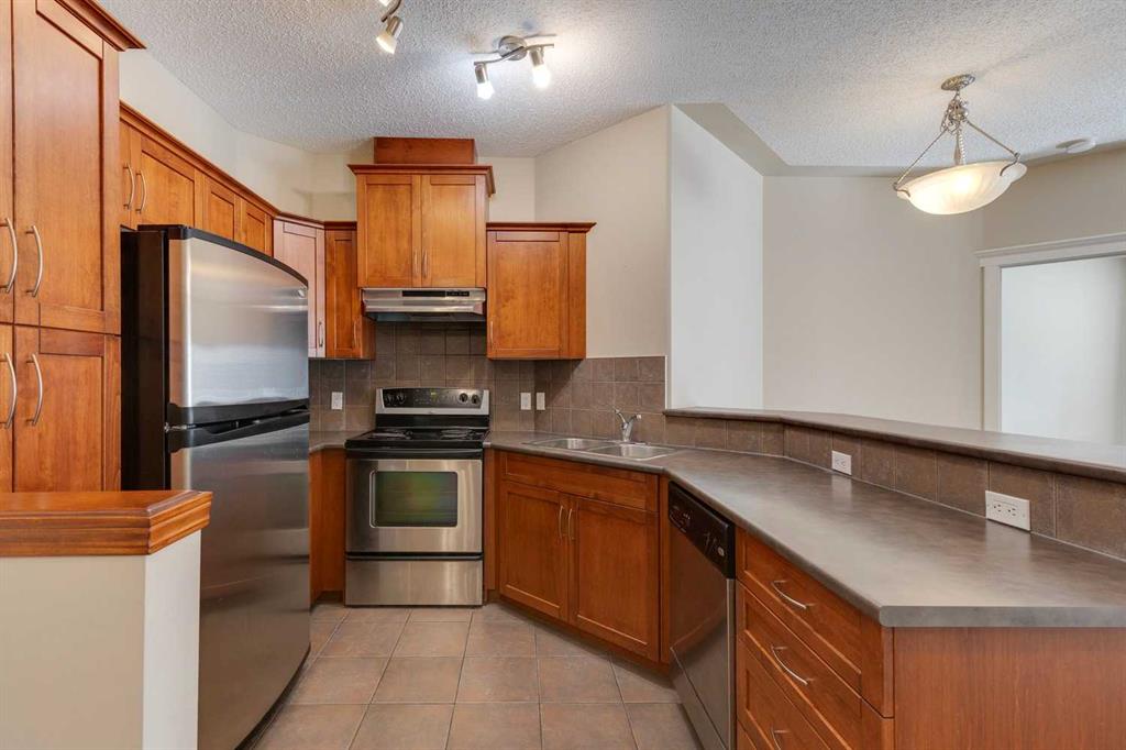 The Wedgewoods of Discovery Ridge is a high end concrete building backing directly onto a 93 acre natural reserve (Griffith Woods). The complex also sides on to the community associations recreational facilities including a children's playground, tennis courts, soccer fields, skating/hockey rink and a basketball court. The complex offers a full gym, social room, onsite management and lobby/hallways that look like a high end hotel. This 2 bedroom, 2 full bath unit is ideal for the professional who wants a roommate or home office. The living room offers hardwood flooring, 9' ceilings, gas fireplace with stone face, border feature on ceiling and is very bright thanks to being offset and set back from the woods. Kitchen has stainless steel appliances, breakfast bar, maple cabinets and tile flooring. There is brand new carpet in both of the bedrooms. Primary bedroom has a huge walk in closet and a 4pc ensuite. The ensuite has a tile floor, separate shower and a soaker tub. Second bedroom is a good size ideal for a roommate, office, yoga studio or guest suite. There is a full size storage locker in front of the parking stall. Not all units have them. Some only have 1/2 size storage area. Deck is large and very private with lots of light. Not uncommon to see deer in the green space the deck over looks. Short drive to the LRT, Westhills Shopping Centre, downtown and the mountains. Right off the ring road ensures you can get anywhere in the city in a hurry.