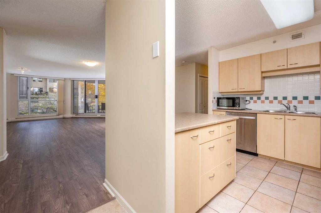 Public Remarks Welcome to the Liberte - a prestigious concrete building nestled in the highly sought-after community of West Eau Claire. Just steps away from Prince’s Island, the iconic Peace Bridge, and the scenic Bow River, this prime location boasts extensive pathways, a bike path system, and easy access to the 8th Street LRT station. This meticulously cared residence features two Bedrooms, a Den, and two Bathrooms, along with two Balconies (Southeast & Southwest-facing) - perfect for enjoying the sunset. Spanning 1,231 sq. ft., this home is one of the few units provides an exceptional open and spacious floor plan. Upon entering, you will be greeted by an abundance of natural light pouring through the Floor-to-Ceiling windows, complemented by newer laminate flooring that seamlessly connects the living spaces. The Kitchen boasts an island with a Breakfast bar, ample cabinetry, and stainless steel appliances, flowing effortlessly into the Dining and Living areas. You’ll love the sun-drenched Living room, featuring a cozy gas fireplace, ideal for relaxing evenings. Step outside to your oversized balconies, perfect for sipping your morning coffee or enjoying cocktails and BBQs in the evening. The Master Bedroom is generously sized, providing a serene retreat with views of the trees, dual closets, and a Four-piece Ensuite Bathroom. A second Bedroom and additional Bathroom provide flexibility for guests, while the inviting Den with double French doors can easily be converted into a third Bedroom to suit your needs. Additional features include In-suite laundry, a Titled underground parking stall, and an assigned storage locker, all of which enhance the value of this exceptional home. The Liberte also offers a gym, a social party room, and an exclusive tennis court for residents. Enjoy the convenience of being within walking distance to AlForno Bakery/Café, Buchanan’s, and the vibrant Kensington community across the 10th Street Bridge, where you’ll find an array of shopping and entertainment options. Don’t miss the chance to make this urban oasis your home or the perfect place to downsize!