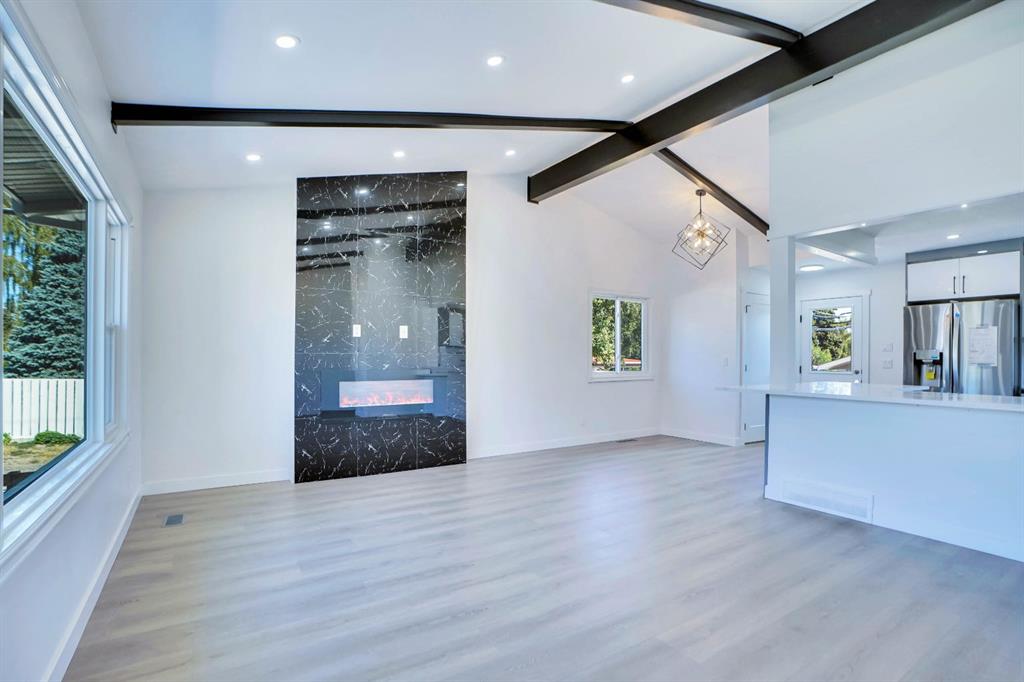 Welcome to 4648 North Haven Drive! This beautifully renovated 4-level split offers 2,173 sq ft of thoughtfully developed living space. Completely transformed, this home features 5 bedrooms and 3.5 baths, making it perfect for families of all sizes. As you enter, you'll be greeted by beamed ceilings that create an open feel. Relax in the cozy living room, where the electric fireplace sets the perfect mood. The main floor includes a convenient half-bath near the back door, ideal for entertaining guests both indoors and outdoors. The brand-new kitchen is ready for its next chef, boasting stunning quartz countertops, high-end appliances, under-cabinet lighting, and a built-in microwave for added convenience. Upstairs, you'll find three generously sized bedrooms and a beautifully updated 5-piece bathroom, perfect for family living. On the third level, there's another full bathroom, a versatile space perfect for movie or game nights. The wet bar ensures that snacks and drinks are always close at hand. As you head down to the fully finished basement, you'll discover two additional spacious bedrooms and a luxurious custom bathroom, offering privacy for older children or guests. The home has also been upgraded with a new furnace, water tank, and windows, all of which are only 4 years old, ensuring both comfort and energy efficiency. The exterior of the home has undergone a complete transformation as well. The 6,050 sq ft lot features new landscaping, brand-new stucco, and extensive concrete work. The oversized 22' x 22' garage provides ample space for hobbies and storage, while still leaving a large yard for kids and pets to enjoy. Located in a quiet, family-friendly community, this home is just a 5-minute walk to schools, parks, and playgrounds, with a charming café nearby. Plus, you're only a short 7-minute drive from SAIT and the University of Calgary.
