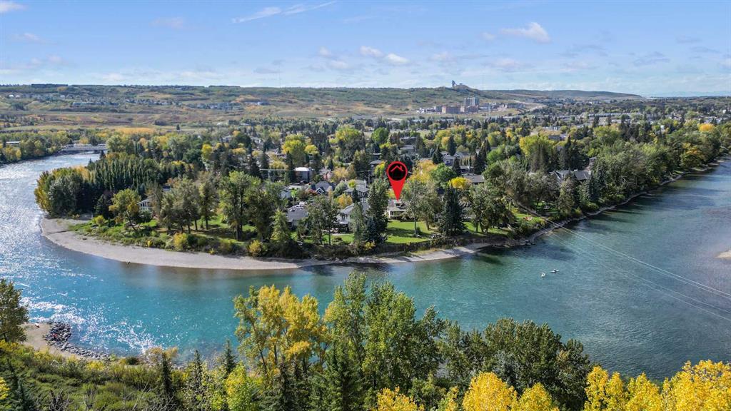 Welcome to a breathtaking waterfront property on the banks of the Bow river! Located on an incredible, almost half an acre lot (0.46 of an acre), a mature treed and very private location, encompassing 100 feet of river frontage, offering spectacular river views and the vast river escarpment views beyond!! The expansive four bedroom, 2,775 sqft two story house is a "diamond in the ruff" presenting a real opportunity and awaiting a renewal to its former grandeur! The main floor is accentuated by real hardwood flooring, granite counter tops, a gas fireplace in the living area, amazing river views from the main floor master bedroom (including a 5-pce ensuite bath) and main floor laundry. The upper level consists of a massive bonus room c/w spectacular river views and three more good sized bedrooms. The lower level is unspoiled, ready for new development, increasing the value and space. There is an oversized double attached garage and a massive front exposed aggregate concrete parking area. This property is situated in an incredible location in Bowness at the end of a very quiet and private cul-de-sac. This is a wonderful family home awaiting new ideas and updates!