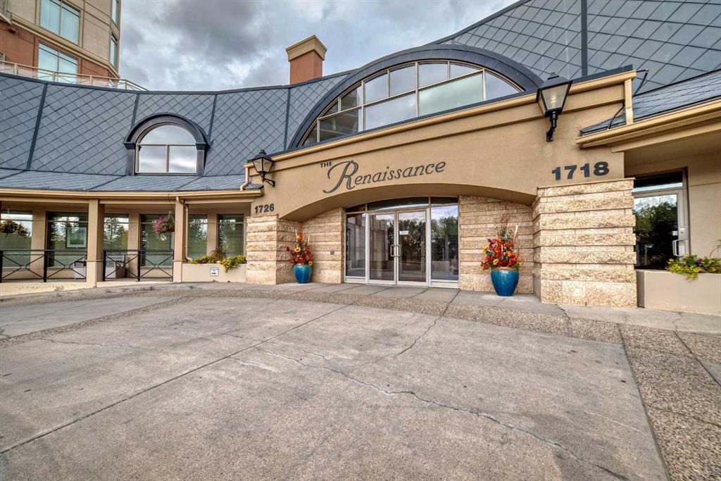 Public Remarks }}} Open House SATURDAY(NOV 23) 2-4 PM {{{ *** SUB-PENTHOUSE IN the RENAISSANCE WEST TOWER WITH A PANORAMIC VIEW OF THE CITY SKYLINE! Two large bedrooms plus den. Spacious living room with wall of windows to take advantage of the VIEW plus a gas fireplace and access to an inviting resort style patio. Modern open kitchen with breakfast bar and granite counters. Second bedroom has full size MURPHY BED plus it's own private balcony. Large master bedroom with walk-in-closet, ensuite with double sinks, separate shower & soaker tub plus access to patio. Main bath has jetted walk-in tub. Double tandem titled parking stalls with a large private storage room in front. COURTEOUS 24/7 concierge, guest suite, owner's theater, games room, fully equipped gym and craft/hobby room. DIRECT ACCESS TO NORTH HILL MALL...WHAT A BEAUTIFUL WAY TO LIVE!