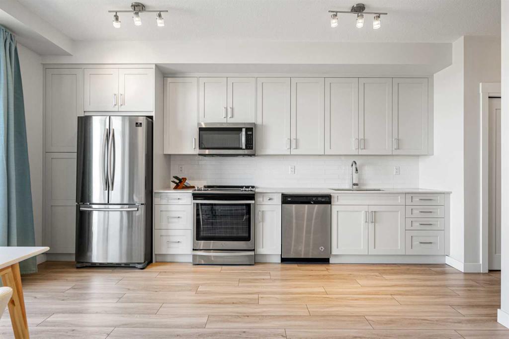 Welcome home to the sought-after neighborhood of Auburn Bay! This stunning 1-bedroom apartment seamlessly combines practicality and contemporary design. Great value, low condo fees and so much more are waiting for you in this one! Enjoy a long list of upgrades including high-end kitchen appliances, modern quartz countertops, a BBQ gas line, full-height shaker cabinets, luxury vinyl plank flooring throughout, a deep soaker tub, and premium finishing materials. Its 9-foot ceilings, well-designed layout, and huge covered balcony give this unit great functionality. The unit comes with convenient above-ground titled parking (#31) and a secure underground storage locker (#3405). Easy access to major arteries including 52nd Street, Stoney Trail, and Deerfoot Trail make commuting a breeze. A full range of grocery, retail, and service establishments lie within easy walking distance in Auburn Bay or just across the street in Mahogany. The Auburn Rise complex is pet-friendly, and there is an abundance of off-leash parks and green spaces for your four-legged friends to enjoy. Experience the ultimate lifestyle with access to the community beach and year-round activities. Call your agent and book your showing today!