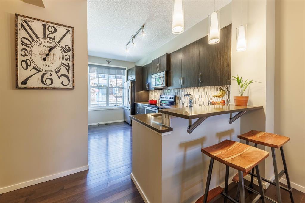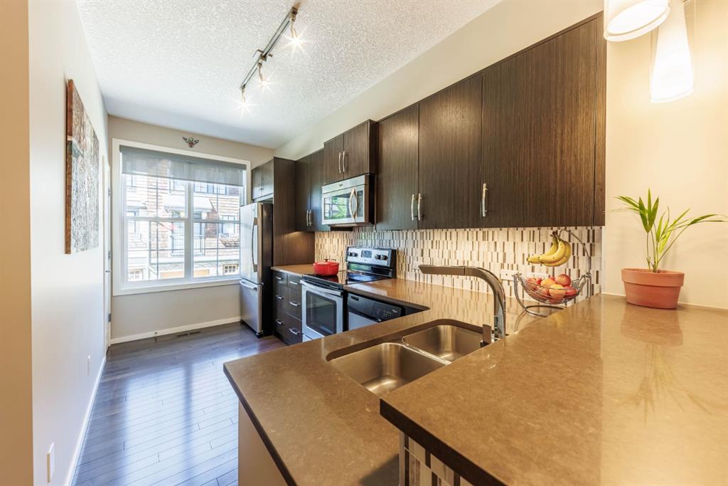 Public Remarks Welcome HOME to this elite, mountain-inspired, townhouse condo in the sought-after ‘Enclave at Castle Keep’ neighborhood of Aspen Woods! Picture yourself coming home to a stunning environmental reserve, including natural ravines, walking paths, bike trails and wildlife. The main floor features an open-concept plan. The kitchen features stainless steel appliances, quartz countertops, pantry and 2-person breakfast bar. A 2-piece bath, spacious living/dining room, upgraded light fixtures and custom feature wall with cozy fireplace round out the main floor. Off the living room, a balcony overlooking a peaceful, courtyard oasis is equipped with a gas BBQ bib. The upper-level features 2 bright master bedrooms, each with an ensuite, plenty of closet space and a conveniently-located washer/dryer room. A double attached tandem garage provides additional invaluable storage space. This inviting and very well-maintained home is situated in an undeniably remarkable location! Close to prestigious schools (Webber Academy, Rundle College), extensive amenities, restaurants, the 69th St. LRT station and Westside Recreation Centre, it also provides easy access to Stoney Trail. This unique property and unforgettable location invites you to experience an idyllic blend of nature, stunning views, comfort, style and accessibility. Prepare to be impressed!
