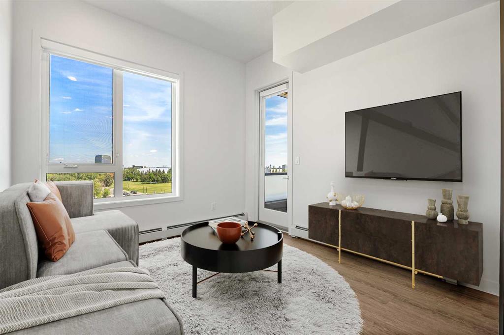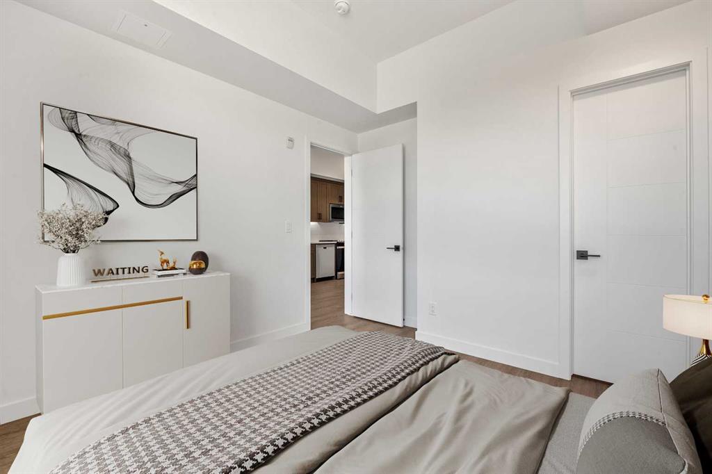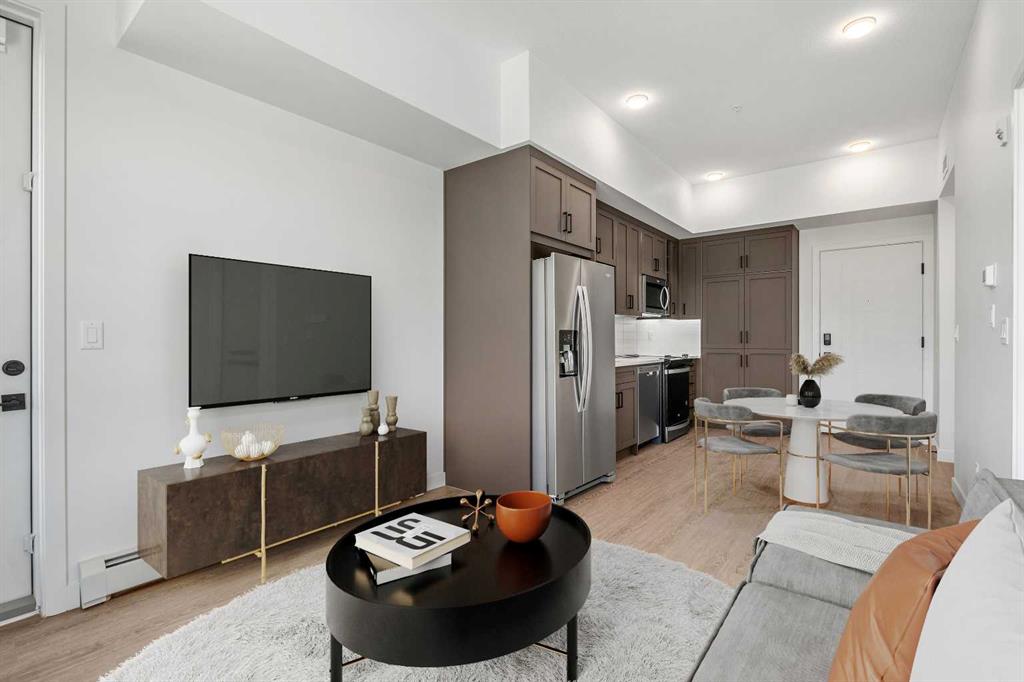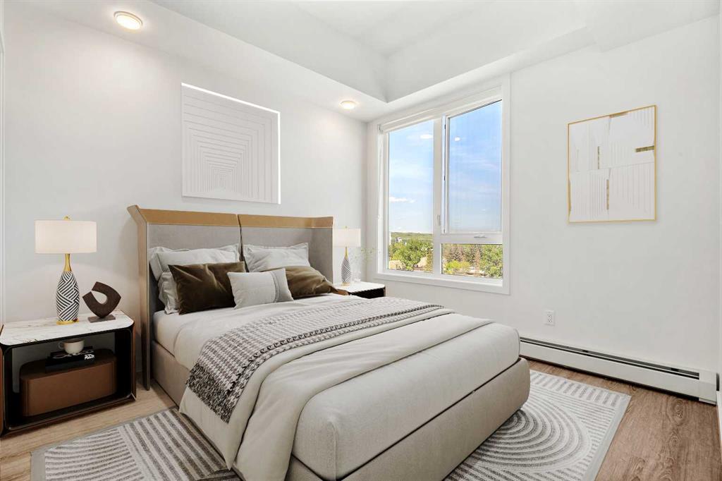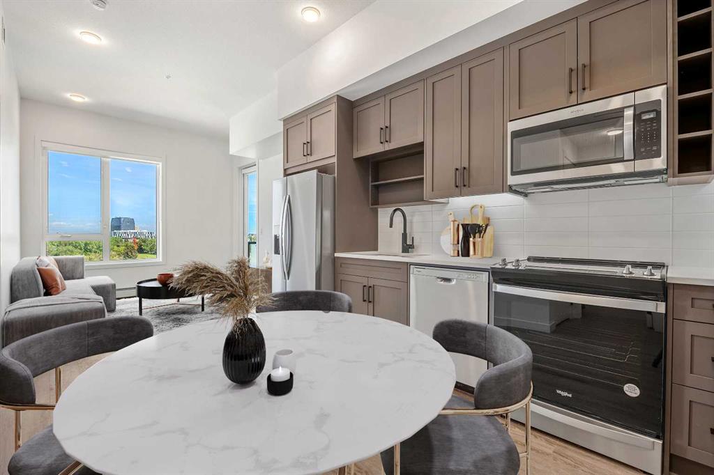 THIS COULD BE THE ONE AND PRICED TO SELL! Enjoy the amazing COVERED & PRIVATE balcony in all seasons. Your brand new home awaits you in Calgary's vibrant University District! This TOP-FLOOR unit offers an unparalleled living experience, combining luxurious interior finishes with an unbeatable location. The spacious 10’-FOOT ceilings (available exclusively on the top floor only) further enhance the open and airy feel, creating a welcoming atmosphere. The added privacy and peaceful living, free from overhead noise and neighbours is sure to add to your long-term enjoyment of your home. This BRAND NEW 1-BED, 1-BATH condo is a modern sanctuary designed for comfort and convenience. Step inside and be greeted by an open floor plan, gorgeous grey cabinetry with ample storage, premium stainless-steel appliances and luxury vinyl plank flooring for ease of care, combining the elegance and practicality one expects for modern living. A generous sized bedroom with a walk-in closet, 4-piece bathroom with a deep tub to soak away your worries (upgraded), and a spacious in-suite laundry room ensures all the conveniences of home. Away from the noise of the busier trafficked streets, the charming, COVERED Bistro-style balcony is a perfect spot for enjoying morning coffee/tea or an evening glass of wine while planning your next intimate Alfredo experience. For larger gatherings, enjoy the common terrace and party rooms conveniently situated in the building on the 2nd floor. The fitness facility and storage lockers are mere steps away on the same floor. Amenities includes fitness facility on 6th floor, party room/social room, and outdoor terrace on the 2nd floor. Premium location for professionals and students in the area. Enjoy the community parks, outdoor skating rink, shops, restaurants, dog park and so much more. Included is 1 UNDERGROUND titled parking stall, steps to the elevator (#21), 1 assigned storage locker (#141) and A/C rough-in. VIRTUAL TOUR AVAILABLE!