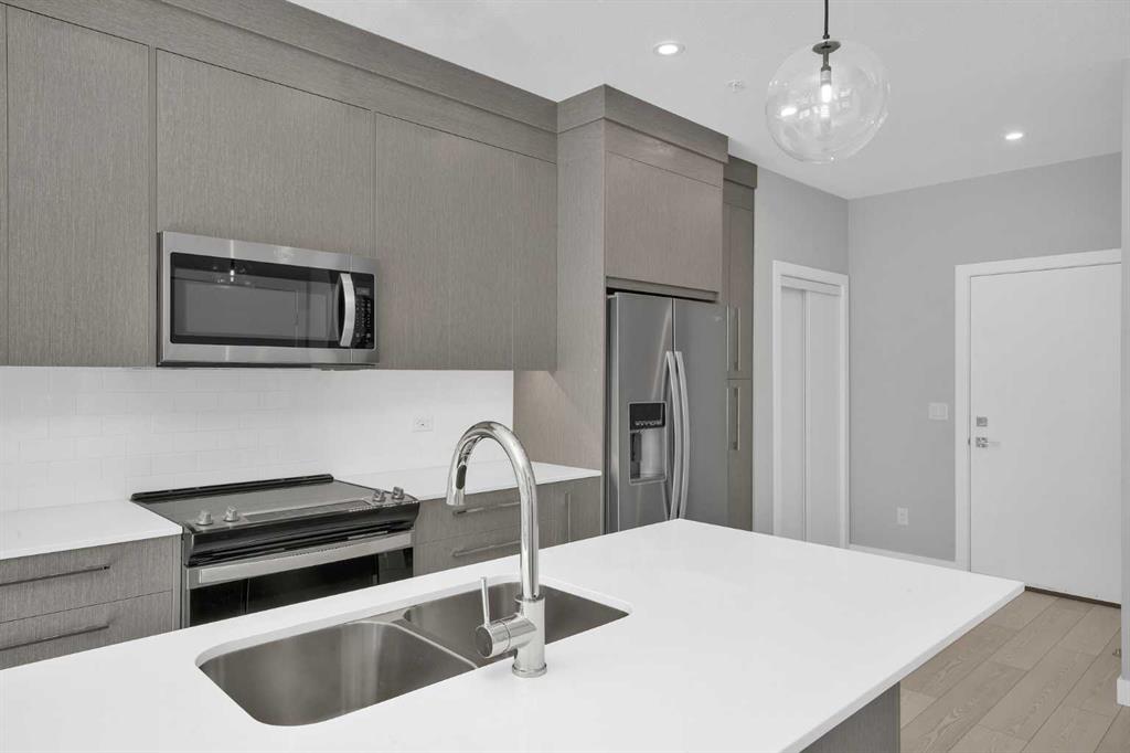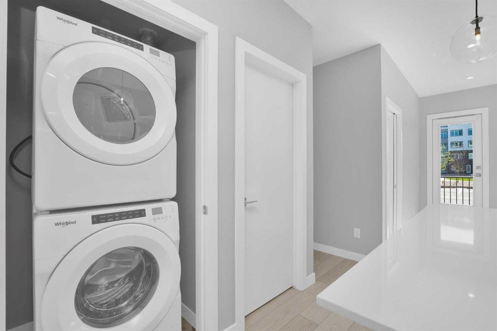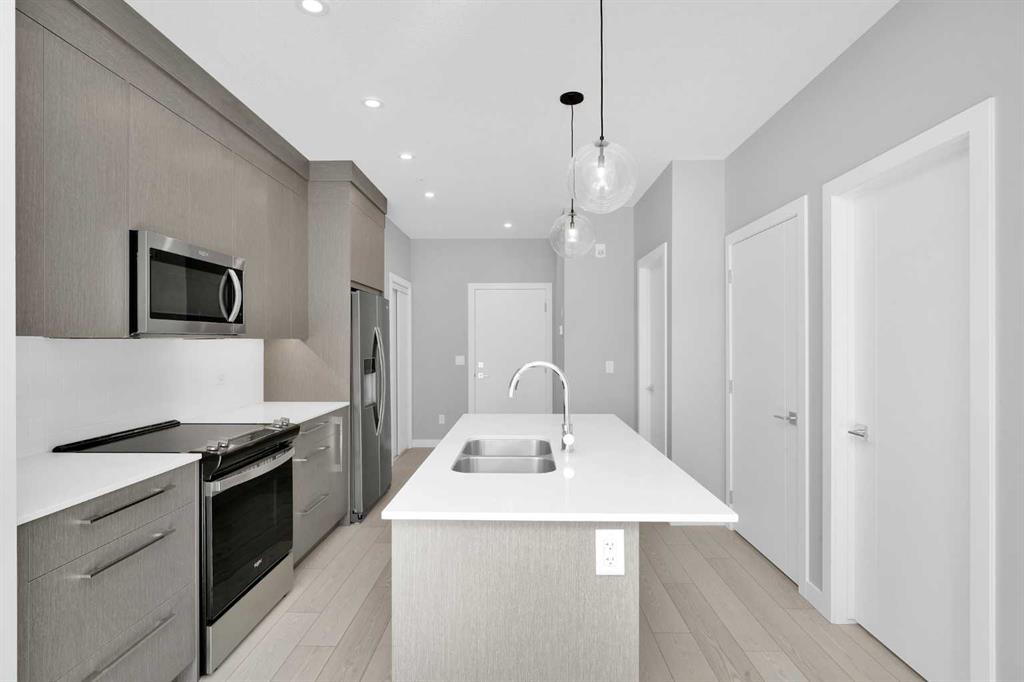 Welcome to Cavallo! An exceptional new development by Truman Homes, located in one of Calgary’s newest communities - Cityscape. This brand-new 2-bedroom, 1-bathroom condo boasts contemporary design and stylish finishes throughout. Step inside to an open-concept layout featuring luxury vinyl plank flooring, oversized windows, and a sliding door that leads to your private gated patio—complete with a convenient gas line for BBQs and a second entrance for easy access. The sleek, modern kitchen is equipped with soft-close cabinetry, ample storage, and brand-new stainless steel appliances. The primary bedroom features large windows fill the space with natural light. The walkthrough closet leads into a thoughtfully designed 4-piece bathroom with dual access, offering both privacy and convenience. The versatile second bedroom is perfect for a spare bedroom or a home office. Cavallo is a pet-friendly building offering a range of great amenities, including a pet spa, fitness centre, entertainment lounge, visitor parking, and EV charging stations. With shops and amenities just moments away, this condo offers a perfect blend of style, convenience, and modern living. Don’t miss the opportunity to be the first to call this stunning unit your home! This unit comes with Alberta’s New Home Warranty and your very own private titled underground parking stall.