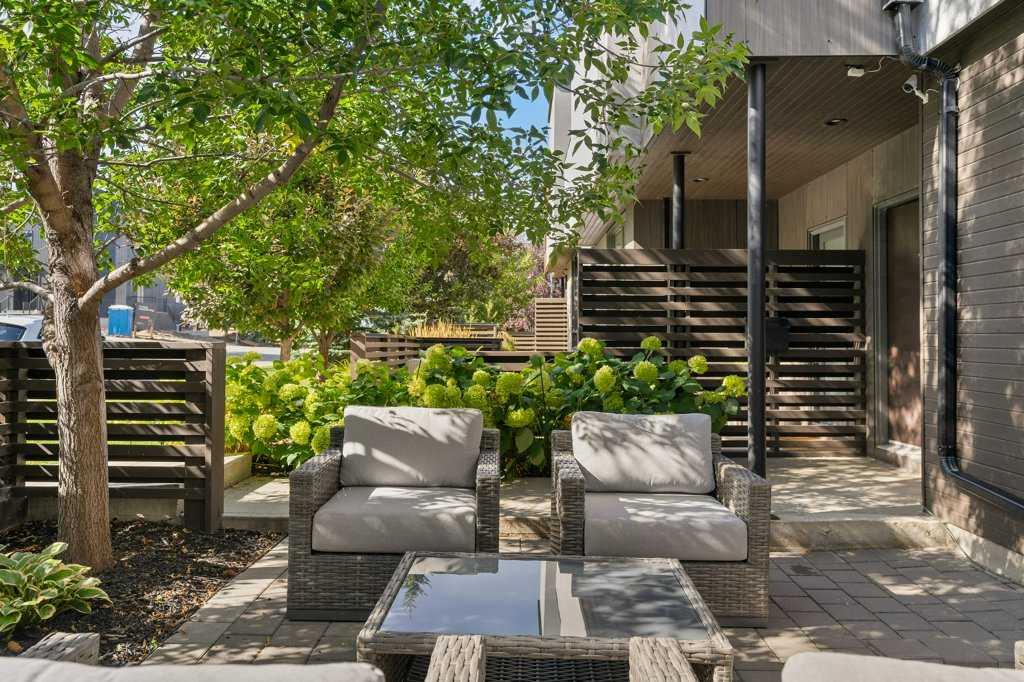 Behind verdant hydrangeas and established perennials, this stately residence spans over 3700 square feet across four elegantly appointed levels, beautifully maintained to emulate a peaceful, low-maintenance oasis. Thoughtful upgrades have created a residence with a plethora of comforts, while tasteful details provide beauty to the most discerning buyers. The home boasts 3 bedrooms, 3.5 bathrooms, and a Savaria elevator granting access to all floors. The design seamlessly merges classic and modern elements, including a custom Serenade fireplace, walnut built-ins, wide plank hardwood, pot lighting, 9' flat painted ceilings, and a stunning open riser staircase. The stone courtyard front patio invites you into the main level, featuring a living room, kitchen, dining room, and half bathroom. The living room offers a striking gas fireplace with multifunction remote and built-in bookshelves for stylish storage. The gourmet kitchen is truly the heart of the home, boasting walnut cabinets with soft-close hardware, quartz countertops, glass tile backsplash, waterfall island, pull-out pantry, Brigade stainless steel appliances, wine fridge, Fisher Paykel dual drawer dishwasher, and built-in Miele espresso machine. Ascend the open riser staircase to the second level, where two large bedrooms await, one with a private balcony. This level includes a four-piece bathroom with a soaker tub and Thermasol steam shower, as well as a laundry room with built-ins and sink. The third floor is the primary retreat, where peace and luxury become part of your daily ritual. This grand space features a kitchenette/bar with sink, dishwasher, and beverage fridge for morning routines or late-night refreshments. The luxury continues with a walk-in closet, private balcony with downtown views, and an ensuite with dual vanities, soaker tub, and under-cabinet lighting. The fully developed basement provides more space to entertain with heated hardwood, custom cabinets, Sub-Zero wine storage, and floor-to-ceiling entry storage. Move-in ready, this home includes a Nest thermostat, custom window coverings, Control 4 automation, in-floor heating in every bathroom, reverse osmosis system, automated irrigation, high-efficiency AC, water softener, humidifier, tankless hot water heater, and Vaccu-flo. The oversized double attached garage features in-floor heating, custom built-in cabinets, epoxy floors, and WiFi-enabled garage door control. Close to vibrant Marda Loop’s boutique shopping, restaurants, cafes, and more, this is the epitome of luxury and convenience, offering unparalleled low-maintenance living in one of Calgary's best communities.