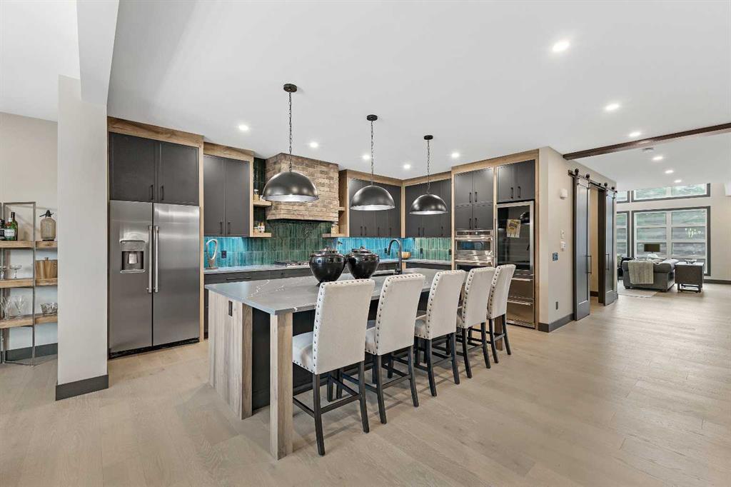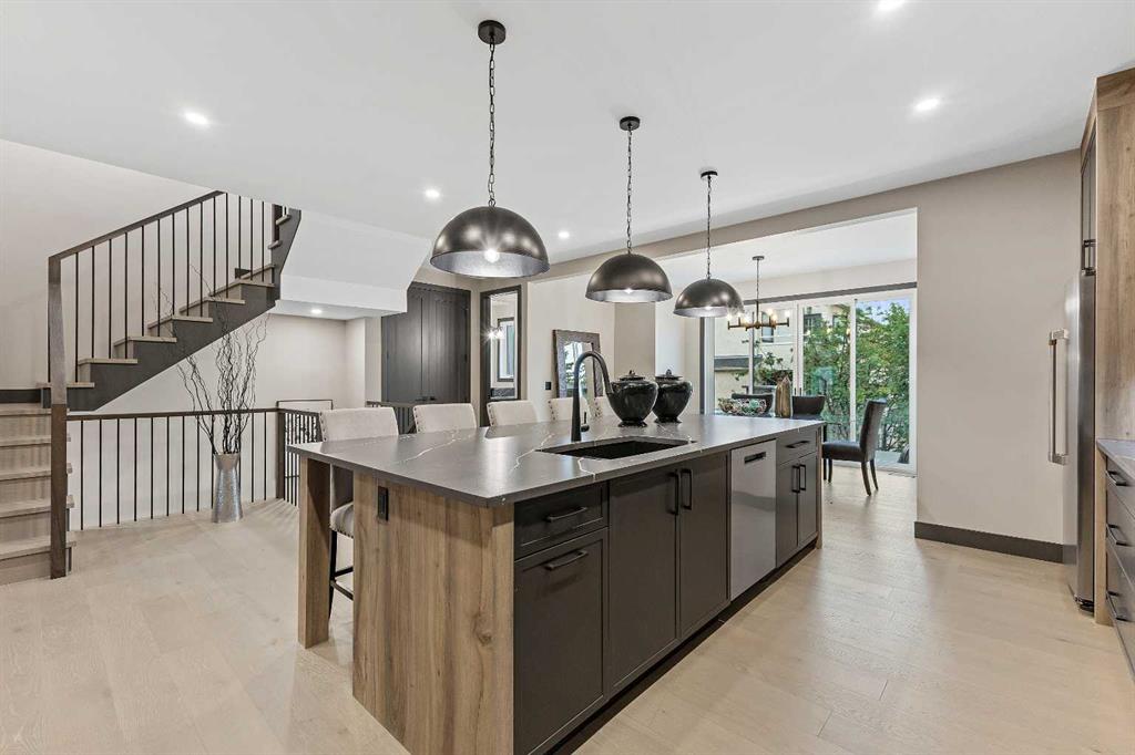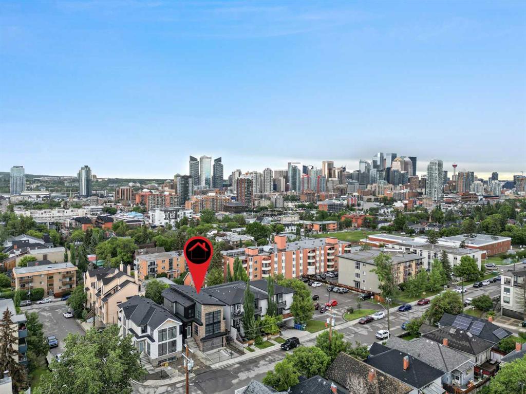 Welcome to 1514 22 Ave SW, a luxurious infill with Downtown Views! Discover the epitome of modern living in this stunning brand-new infill, situated in the coveted Bankview neighborhood of Calgary. This exquisite property boasts 4 bedrooms and 4 bathrooms spread across an expansive 3,373 square feet of meticulously designed living space. As you step inside, be prepared to be amazed by the stunning wood accent vaulted ceiling that sets the tone for the rest of the home. The living room features custom built-ins, a charming brick gas fireplace, and large bay windows that flood the space with natural light. Double barn doors open to reveal a versatile den or office space. The gourmet kitchen is a chef's dream, equipped with top-of-the-line GE Café appliances, including a wall oven and microwave, a gas cooktop with a brick overhead range hood, and a refrigerator. A wine cellar adds a touch of elegance, while quartz countertops, a spacious kitchen island, and a beautiful vintage green tile backsplash complete the sophisticated look. The adjacent dining room is perfect for family gatherings and entertaining guests. A stylish 2-piece bathroom on the main level adds convenience. Upstairs, you'll find a well-appointed laundry room with washer and dryer, ample storage, and a sink. The master bedroom is a true retreat, featuring a coffered ceiling, a walk-in closet with custom built-ins, and a luxurious 5-piece ensuite bathroom with dual sinks, a soaker tub, and a stand-up steam shower. Two additional bedrooms, each with walk-in closets, share a 4-piece bathroom. The second-floor deck offers breathtaking city views, perfect for relaxing or entertaining. The carpeted walk-out-to-grade basement is a haven for relaxation and entertainment, boasting a large family room, a wet bar, a fourth bedroom, a flex area, and a 3-piece bathroom. This exceptional home is located in the desirable Bankview area, offering close proximity to downtown Calgary, the vibrant 17th Avenue Shopping District, Marda Loop, and Mount Royal University. Moreover, this home offers several uncommon yet highly desirable features. The loft includes a unique interior Juliette patio, and the upper bedroom features a convertible closing door patio that can serve as a bedroom, flex room, den, studio, or workout space. Additionally, the property stands out with its oversized lot width, providing a more spacious interior. Experience unparalleled luxury and modern living in this spectacular infill home. It’s more than just a residence; it’s a lifestyle.