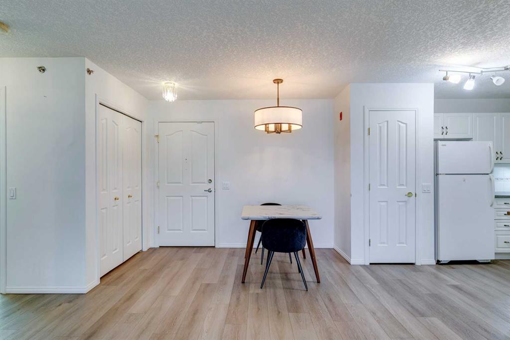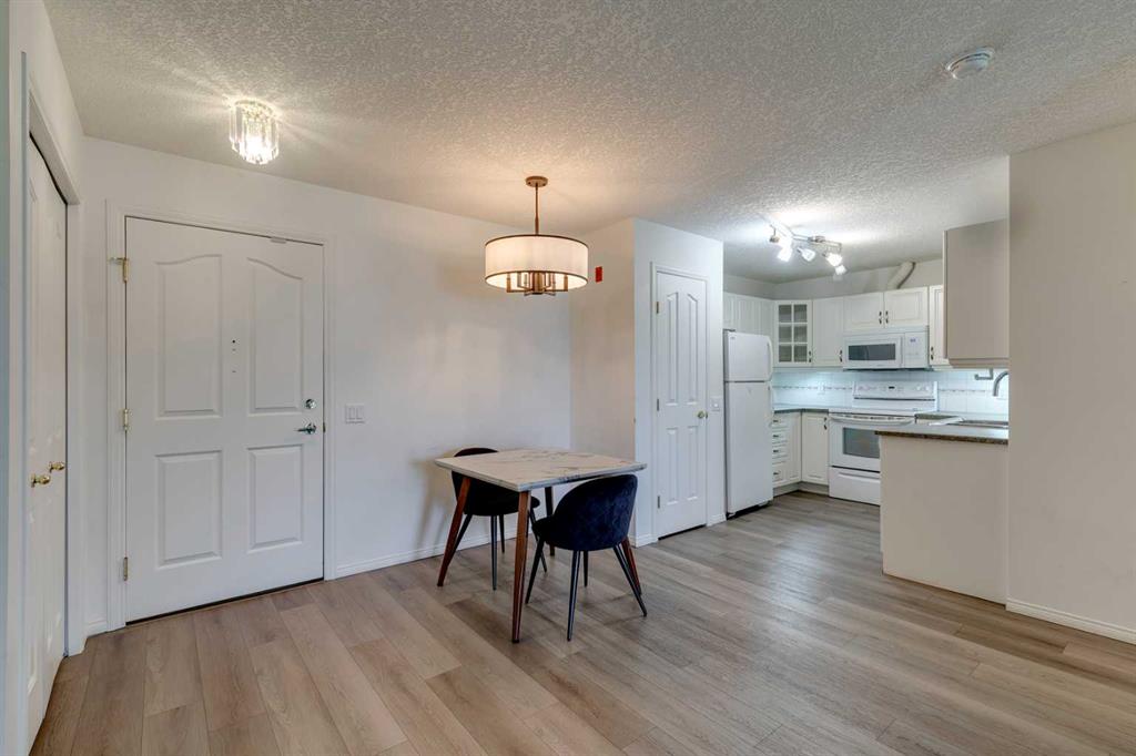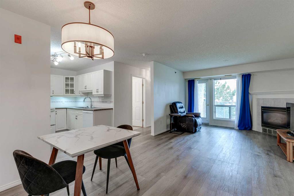 Experience Elevated 55+ Living in Dana Village! Discover this top-floor Corner End Unit, where comfort and convenience blend seamlessly. This Bright and Sunny 2-bedroom, 1-bathroom Condo features an open concept floor plan, perfect for easy living. The spacious covered balcony offers serene courtyard views and is complete with a BBQ gas line. With vinyl plank flooring, large windows, and in-unit laundry, you'll enjoy modern living at its finest. Plus, the unit is equipped with air conditioning and includes assigned parking in a heated parkade. Dana Village is a vibrant 55+ community brimming with amenities and activities. Whether you're a woodworker in the hobby room or challenging friends at the billiards table there's a little bit of something for everyone. Relax in the library, enjoy meals in the dining hall with a community kitchen, or gather in the social room. Ideally located, Dana Village is just a short walk to the Westside Recreation Centre and the Sirocco LRT Station, with easy access to shopping at Sunterra and Signal Hill Centre. Units in this building are highly sought after, and corner end units are a rare find—this one won’t last long!