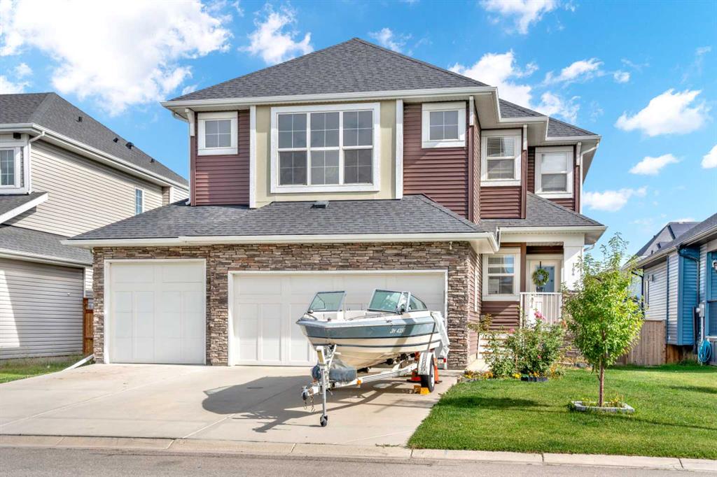Welcome to this two-story home showcases a captivating design and picturesque west-facing backyard views. Upon entry, the elegance of hardwood floors welcomes you, gracefully extending through the foyer, halls, living room, family room, kitchen and dining area. The kitchen has received a sophisticated upgrade, boasting stainless steel kitchen aid upgraded appliances, a big sized island topped with premium granite countertops, and a seamless connection to the spacious living room. Here, a cozy gas fireplace and expansive westward windows bathe the area in natural light, fostering an inviting atmosphere, offering versatility and character. Ascending upstairs, you'll discover a separate, huge size bonus room, along with three secondary bedrooms and a well-appointed four-piece bath. The luxurious primary bedroom suite beckons, showcasing a substantial walk-in closet and a lavish five-piece en-suite. Complete with a soaker tub, walk-in shower, and dual sinks, this en-suite ensures ultimate comfort and relaxation. Additional features include a triple-car attached garage and window coverings. With its impeccable design, this home seamlessly blends style and functionality, promising a move-in-ready lifestyle for its fortunate occupants.