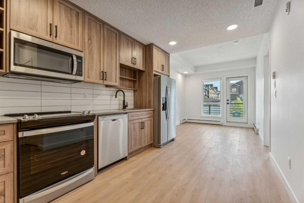 Great opportunity! Wonderful 1 bedroom 1 bathroom in the upcoming neighbourhood of Livingston. Nice open floor plan and SOUTH FACING EXPOSURE make this unit feel bright. This unit has it all with a TITLED PARKING STALL and assigned STORAGE UNIT. The living area is fit with neutral vinyl plank flooring! The kitchen features nice modern cabinets, stainless steel appliances and quartz counters. Nice black hardware package throughout. On the south end of the condo there is a big balcony that faces the parking lot. The Livingston Hub is the central gathering place for residents. It features a 35,000 sq. ft. homeowners' association with 3 skating rinks, tennis courts, basketball court, gymnasium, splash park, playground, outdoor amphitheater, meeting rooms, a temporary fire hall and more. Call today to book your private viewing!