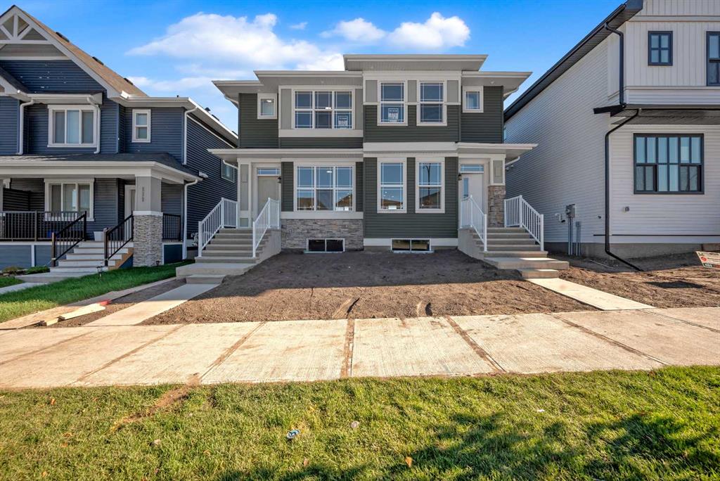 *Back on the market as buyers were unable to secure financing* Brand New Home | Walking Distance to Amenities | 2024 Build | 3- Bedrooms| 2.5 Bathrooms | Quartz Countertops| Stainless Steel Appliances | Dual Tone Kitchen Cabinets | Open Floor Plan | High Ceilings | Ample Natural Light | Recessed Lighting | Upper Level Laundry | Rear Parking | Paved Alley Access. Step into the future of luxurious living with this stunning, newly-built duplex in the thriving Glacier Ridge community! Completed in 2024, this exquisite home features 3 spacious bedrooms, 2.5 elegant bathrooms. Be captivated by the modern design and open floor plan from the moment you enter. The sun-drenched living room, with its ample natural light, sets the stage for memorable gatherings. Host dinner parties in the expansive dining area, perfect for large family meals. The state-of-the-art kitchen is a chef's dream, featuring sleek quartz countertops, stainless steel appliances, chic two-tone cabinets, and a stylish white backsplash. A convenient pantry ensures you’ll never run out of storage space. The adjacent mudroom with closet storage provides easy access to the backyard. Ascend to the upper level to discover a sanctuary of comfort. The grand primary bedroom offers a walk-in closet and a luxurious 3-piece ensuite with a walk-in shower. Two additional bedrooms provide ample space for family or guests, sharing a well-appointed 4-piece bathroom. For ultimate convenience, the upper-level laundry is perfectly situated near the bedrooms. The basement, prepped with a side entrance and rough-in plumbing, is ready for your customization. It offers excellent potential as a mortgage helper by allowing you to create a secondary suite for extra living space. A secondary suite would be subject to approval and permitting by the city/municipality. Parking is a breeze with a rear double parking pad and additional street parking, plus a paved alley at the back. Enjoy the convenience of being within walking distance to Shaganappi Trail, bus stops, Shoppers Drug Mart, and Calgary Co-op. With excellent transit access and a wealth of nearby amenities, renting the basement will be highly attractive to prospective tenants. Buyers will have peace of mind as the House has full new home warranty. The Village Center at Glacier Ridge is thoughtfully designed with a variety of outdoor amenities such as a pump track, skating ribbon, walking paths, basketball courts, an all-ages playground, a spray park, a tennis court, an ice rink, patio spaces, a firepit, and a toboggan hill. Indoors, residents will enjoy a gymnasium, rentable rooms for programs and activities, private event spaces, banquet areas, and comfortable seating and gathering spots. Don’t miss this opportunity to own a piece of modern paradise. Schedule your showing today and make this breathtaking home yours!