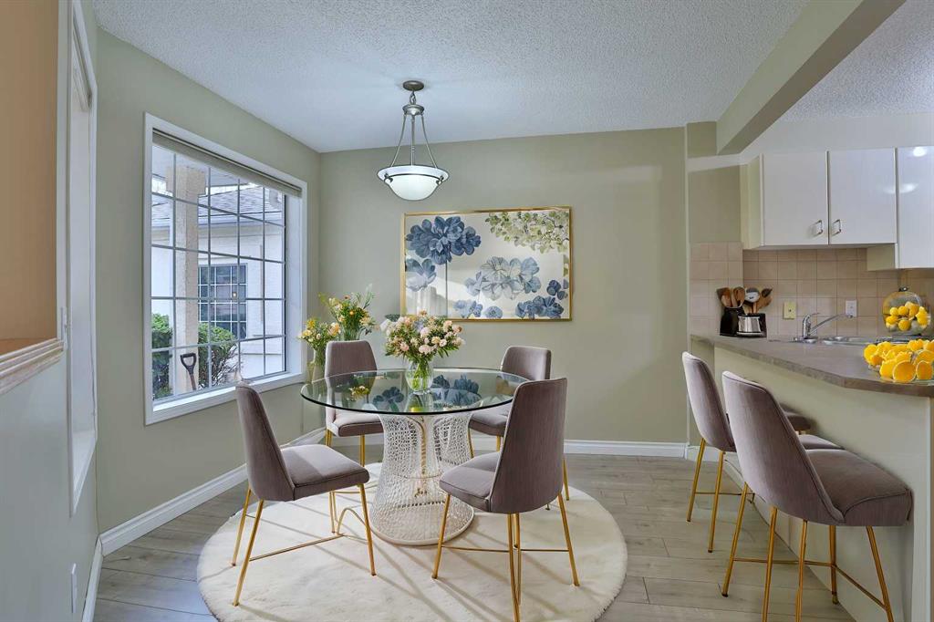 Public Remarks Outstanding value here in the SCENIC ACRES TERRACE townhome project in this popular family community, just steps to the Crowchild Twin Arena & only minutes to Crowfoot Centre & schools. Available for quick possession, this beautiful two storey walkout enjoys brand new interior paint & flooring (carpets & vinyl plank), 3 bedrooms, 3.5 bathrooms & wonderful mountain views. Warm & inviting floorplan featuring great-sized dining room with wall of windows, huge living room with gas fireplace & spacious kitchen with loads of cabinet space & black appliances. Upstairs there are 3 lovely bedrooms & 2 full baths; the master has a large walk-in closet, views of the mountains & updated ensuite with granite-topped vanity & oversized glass shower with built-in bench. The walkout level is finished with a big rec room area with access to the covered backyard patio, laundry room with sink, bathroom with steam shower & lots of extra space for storage. Single attached garage with built-in cabinets, roughed-in vacuflo, underground sprinklers & an amazing Southwest-facing balcony overlooking the backyard & mature trees. Monthly condo fees include grass cutting & snow removal. Top-notch location within minutes to bus stops & neighbourhood parks, shopping & quick easy access to Bowness Park, Nose Hill Drive, Crowchild & Stoney Trails.