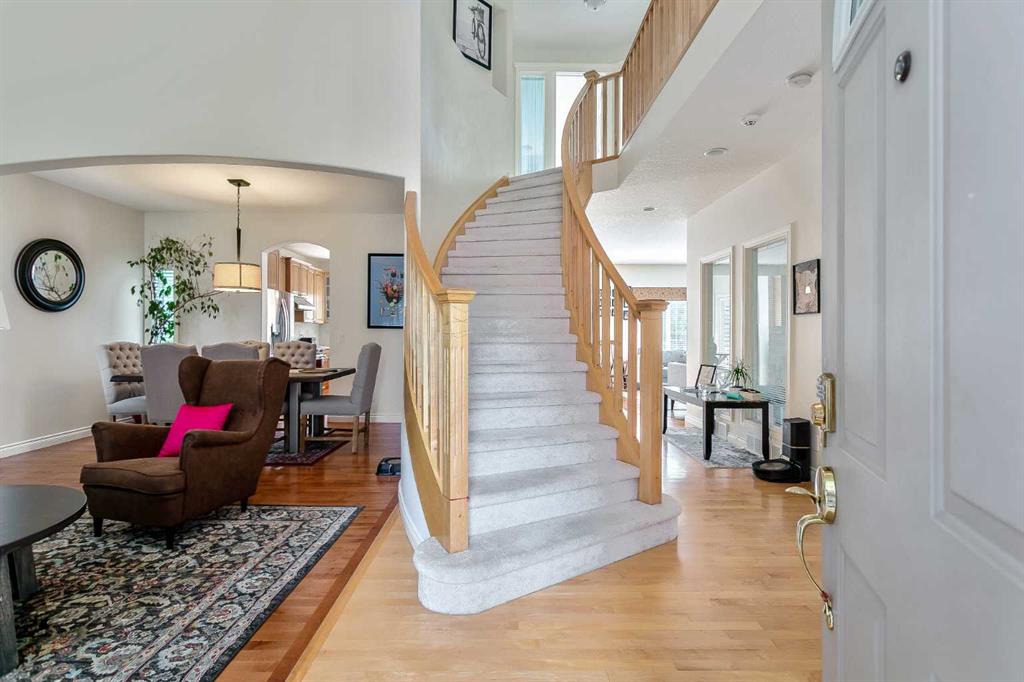 Experience the serenity of a massive pie-shaped, private backyard, encircled by mature Aspens and directly connected to an extension leading to Fish Creek Park. This backyard is a year-round haven for wildlife enthusiasts. The oversized deck offers the perfect setting for entertaining family and friends. Step inside to a grand entranceway adorned with gleaming hardwood flooring and soaring 9’ ceilings. The elegant, open-concept main floor includes a breakfast nook, formal dining room, office, living room, great room, and a laundry room equipped with a sink and a brand-new washer/dryer set. The spacious office can easily be converted into a sixth bedroom if needed. The kitchen is a chef’s delight, featuring a central island with oversized drawers, stainless steel appliances including a 5-burner gas range, a garbage disposal, and a pantry. The upper floor boasts a rare four-bedroom layout, a 4-piece bath, and a bonus room that opens onto a west-facing balcony, perfect for enjoying stunning sunsets. The master retreat offers a lavish 5-piece ensuite with dual sinks, a water closet, a jetted tub, a separate shower, and a walk-in closet. The professionally developed basement, finished by the builder, includes a 4-piece bath, a games room, a family room, a fifth bedroom, and ample storage space. Additional features include a newer hot water tank, a stone/stucco exterior, central air conditioning, and a water softener. The double attached garage is oversized, fully insulated, and heated measuring 22’ x 22’. A new shingles were installed in August 2024.
