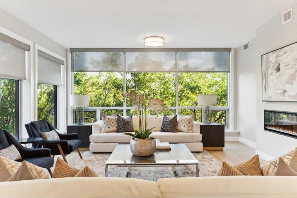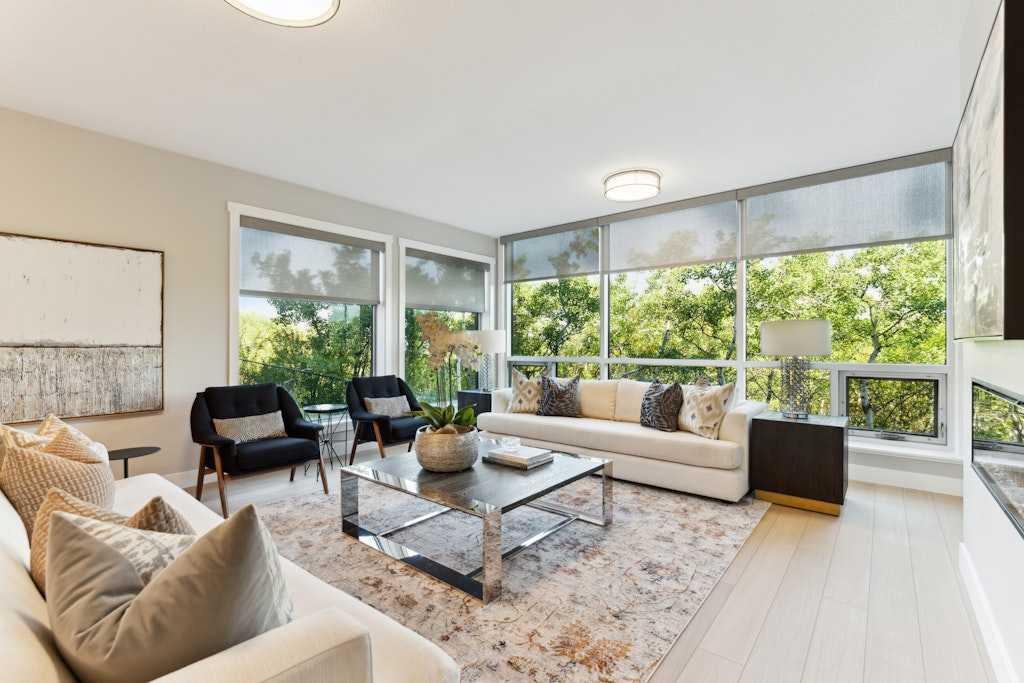 An exquisite & extraordinary offering in the refined haven of Stateman’s award-winning luxury condo triumph, The Views. Nestled into the serene hillside, the concrete & steel building boasts an affluent boutique community with breathtaking views of the Bow River Valley, downtown skyline & the majestic Rocky Mountains in the distance. This elegant 3-bedroom corner residence is an exemplary offering of quality, craftsmanship & design with over 2800 SF of curated living space. Expansive floor-to-ceiling windows allow an inpouring of natural light to flood the stunning open-concept kitchen, living & dining rooms while providing for tranquil views of the natural setting beyond. Stylish cabinetry wraps around the well-appointed kitchen featuring Sub-zero and Wolf appliances, beautiful quartz countertops, designer backsplash & island with seating for 3. The bright dining area overlooks the patio & is a lovely space for indoor-outdoor entertaining while the living room’s exceptional views, fireplace & oak flooring add to the surround of quiet sophistication. The gorgeous plank flooring & neutral palette carry to the luxurious owner’s suite with its extensive views from the bedroom & sitting room, over-sized his & her walk-in closets with custom built-ins & lavish ensuite. This wonderfully indulgent retreat features a gorgeous custom-built vanity with quartz countertop & an abundance of storage, separate shower & freestanding tub to unwind in a relaxing escape. The bright 2nd bedroom with large walk-in closet presents the same lovely views while the 3rd bedroom perfectly suits as an inviting guest room, comfortable office, or private library. This remarkable home is truly unique in its beauty, size & function offering immense storage with a large front walk-in closet, walk-in pantry, laundry room with custom cabinets & an additional in-suite storage room. Completing this well-designed floorplan is a 2nd full bathroom, pretty powder room & flex room cleverly tucked behind modern barn doors. The fabulous bonus room makes for an ideal 2nd living area, theatre, or games room. Other notable highlights of this special property include 9’ ceilings, air conditioning, motorized Hunter Douglas blinds, 2 Titled (& gated) heated parking stalls, additional storage locker & access to the building’s numerous amenities. The Views is a quality designed & constructed state-of-the-art building delivering secure living in a boutique & elevated owner’s community. The outdoor community spaces are beautiful spots for relaxing or visits with friends. Enjoy the outdoor lounge with fireplace or BBQ patio while watching life go by on the Bow River & pathways. The indoor amenities are equally impressive offering a nicely furnished owner’s lounge, well-equipped gym, sauna, golf simulator & heated bike storage. This extraordinary residence presents a distinguished address, spectacular views & an unparalleled lock-and-leave lifestyle. Steps to walking paths & nature, shopping & restaurants.