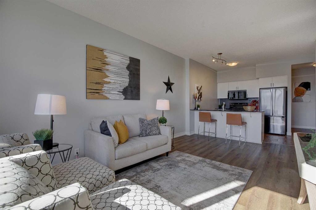 Renovated & stylish, this 1 Bed + Spacious Den is on the 18th floor, in the highly desirable London at Heritage Station complex. With southern exposure, this unit offers expansive views of the city and mountains, providing an ever-changing backdrop of natural beauty. This residence has been thoughtfully upgraded, and is Move In Ready!!!! Featuring a modern kitchen with newer gunmetal appliances and sleek updated cabinetry, perfect for any home chef. The unit boasts luxury vinyl plank (LVP) flooring perfect for your pets, giving it a contemporary feel, while the large, sun-filled living area invites you to relax and take in the stunning surroundings. The open-concept layout includes a spacious bedroom, offering plenty of natural light to wake up to every morning. Whether you're enjoying the view or watching the sunset, this space is designed to bring tranquility to your day. In addition to these fantastic in-unit features, you’ll enjoy easy access to Heritage LRT Station and a convenient underground walkway connecting you to Save on Foods and other amenities. This pet-friendly building offers 24-hour security, concierge, unassigned heated underground parking, a flex room, a modern lobby with new furniture, 3 elevators, a 17th-floor sunroom, and a tranquil rooftop garden and patio for your relaxation. Whether you’re a young professional, investor, or simply seeking a serene living space, this condo offers the perfect balance of convenience, privacy, and style. Don’t miss the chance to make this exceptional 18th-floor condo your new home!
