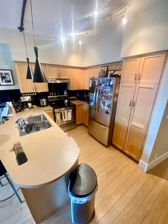 You Gotta Live Here. This great 1 bedroom and bath Condo offers West Sunset Views in the Eau Claire area. It is situated only one block from the Bow River and all the incredible pathways (4000 Km) which makes Calgary number one in the world. The unit features in suite storage and a spacious open den/office... The condo is located on the 8th floor and offers spectacular downtown views to the west. The balcony is full width to entertain and enjoy the outdoor space. The kitchen features a breakfast bar and open concept which is great for entertaining. Located in the famous "T2P" area, you are right downtown in Eau Claire and very close to all the office towers, great restaurants and shops that Calgary's downtown core offers. A titled underground parking stall is standard. Come View this Condo today.