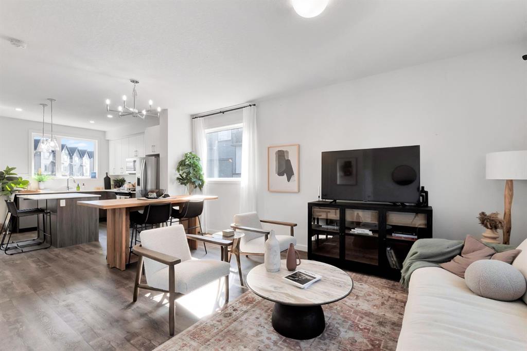 Public Remarks Experience exceptional quality, service, and warranty by the award-winning STREETSIDE DEVELOPMENT, a Qualico company. This fabulous end unit 2-story townhome with a fully developed basement offers a total of 4 bedrooms and 3.5 bathrooms, making it perfect for families of all sizes. Set in the established and charming community of Evanston, this is your last chance to own a brand new one of these modern New England saltbox-inspired homes.The main floor boasts an open concept with 9' ceilings, luxury vinyl plank flooring, and a beautifully crafted kitchen featuring contemporary cabinetry, quartz countertops, and a full-height backsplash. The kitchen comes equipped with Whirlpool stainless steel appliances and an upgraded fridge, opening into the spacious dining and living room, ideal for entertaining.Upstairs, the master suite is a true retreat with a large ensuite, complemented by two additional bedrooms, a full bathroom, and the convenience of a dedicated laundry room. The fully developed basement offers an additional bedroom, a cozy living area, and a full bathroom, providing even more space for family members or guests. Affordability comes first, without compromising on the things your family needs such as playgrounds, green spaces and much more. Start your new maintenance-free lifestyle right away in the comfort of your new home in this beautiful community.