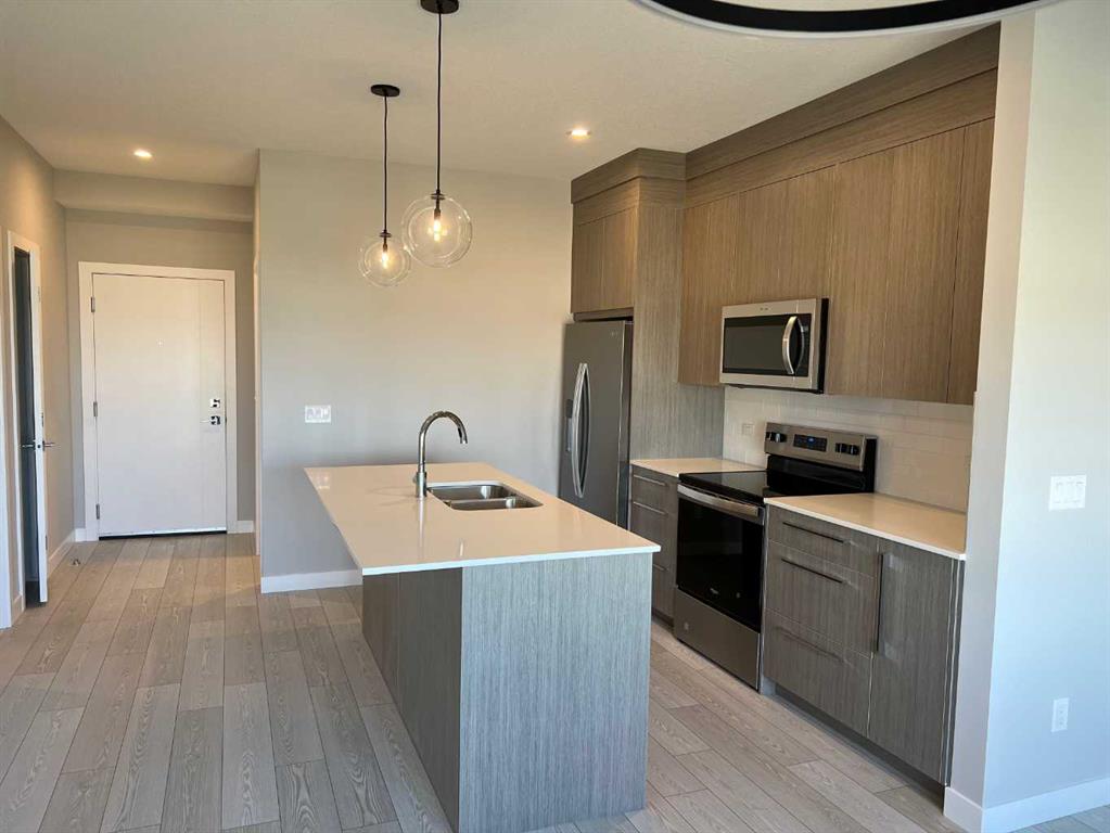 Experience luxury living at its finest in this breathtaking NEW BUILD 2024 , 2-bedroom condo, perfectly situated in the heart of Calgary's vibrant Skyview Ranch community. A top-floor unit with stunning street view from a large private balcony, and a modern open-concept living area with sleek wide-plank flooring and chic lighting ,Gourmet kitchen with large island, stainless steel appliances, and ample storage, Spacious primary bedroom with walk-through closet and luxurious ensuite bathroom, Second bedroom with a convenient access to main bathroom, as well as In-suite laundry. And don’t forget this comes with One assigned underground parking stall, and Ample visitor parking. A family-friendly neighborhood with nearby school, playgrounds, and walking trails with a steps from Sky Point Landing shopping Center for groceries, dining, and entertainment and an easy access to Stoney and Deerfoot Trails and Calgary International Airport. This is pet friendly with Board approval.