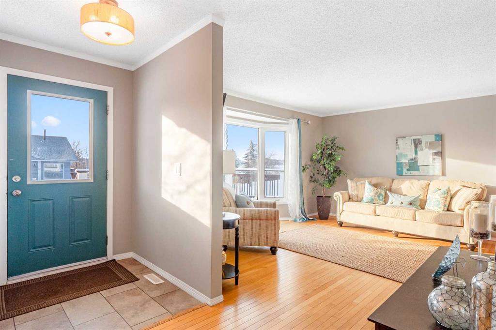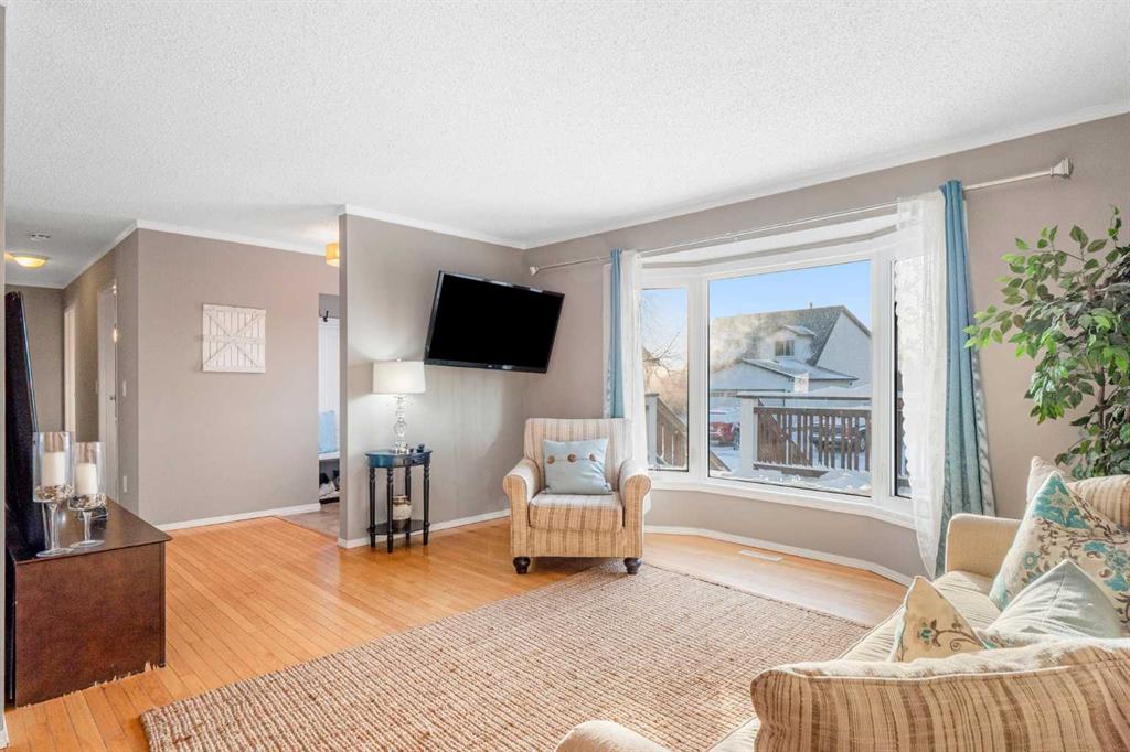 Fall in love with this spacious 2 bedroom, 2 bathroom up bungalow; plus 2 more bedrooms and 1 bathroom illegal basement suite down. Or, enjoy the house as a 4 bedroom, 3 bathroom single family home! This house is nestled in the heart of Airdrie’s desirable Ridgebrook on a quiet cul de sac with superb walking paths and access to downtown shopping, Nose Creek Park, Urgent Care, and the new public library. The wrap around deck is the first thing you notice as you pull up to this spacious south facing corner lot. Once inside you can see how wonderfully bright the windows are and how they highlight the original hardwood flooring! The main bathroom has been renovated and the kitchen cabinetry freshly painted. Downstairs you will find new carpet, a fabulous eat in kitchen / bar and laundry facilities. This home has loads of character. The lot is very large at nearly 5500 sq ft so a double car garage could be an option, and there are fabulous gardening opportunities awaiting in the existing vegetable and perennials beds! There are two graveled off street parking stalls and a garden shed plus much of the larger furnishing may be included in the transaction. Quick possession available. Don't miss it. Book your viewing today!