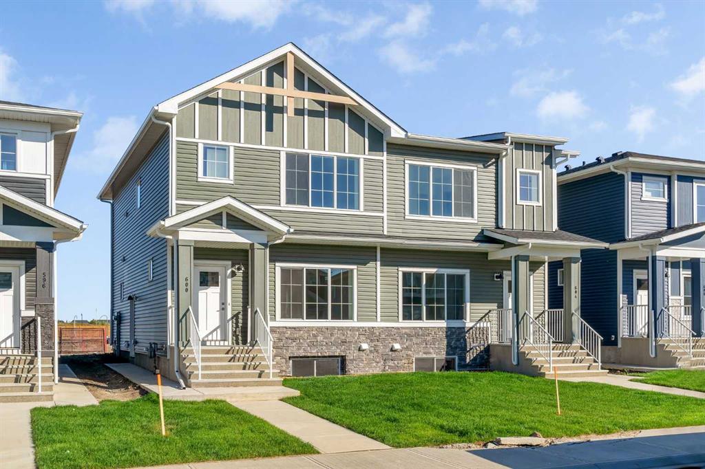 ***Back on market due to financing falling through*** Welcome to this stunning brand-new semi-detached home situated in the highly desirable Dawson Landing community. This property offers a side entrance to the basement, a concrete pad in the backyard, and a bonus area upstairs, making it a perfect blend of functionality and style. Upon entering, you'll be greeted by a spacious open layout featuring a bright living area with expansive windows that fill the space with natural light. The separate dining area flows seamlessly into a well-equipped kitchen, complete with stainless steel appliances, including a chimney hood fan and a built-in microwave. Head upstairs to discover three generously sized bedrooms, 2.5 bathrooms, a convenient laundry room, and a versatile bonus room. The primary bedroom includes a private ensuite and a walk-in closet, while the two additional bedrooms share a stylish bathroom. The basement, accessible through the side entrance, features two large windows, providing ample natural light and excellent potential for future development. The spacious backyard includes a concrete pad, perfect for outdoor entertaining or relaxation. This home truly offers everything you need for modern living in a thriving community!