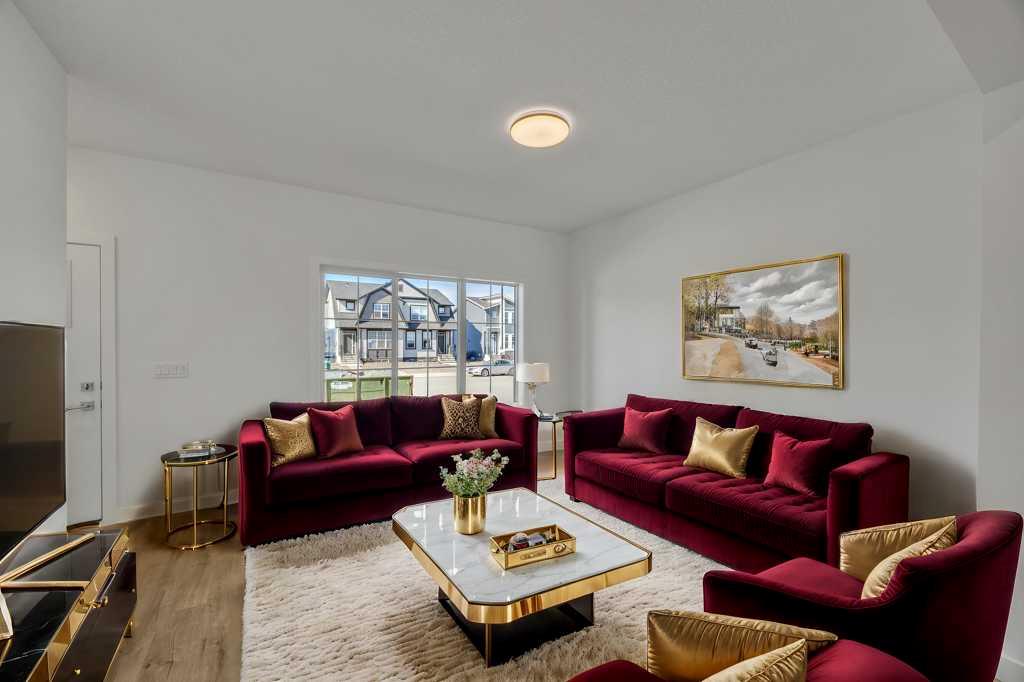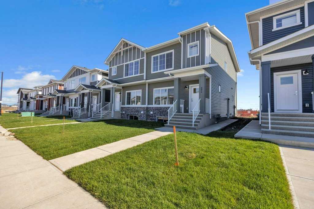 Welcome to this brand new, beautiful semi-detached house in most of the most demanding communities of Dawson Landing, where this house features a side entrance to the basement with 9ft ceiling, concrete pad at the back, bonus area upstairs, primary bedroom with "Tray Ceiling" makes this property a complete package of functionality and elegance. At the entrance, you're welcomed with an open layout, a large living area with huge windows, a separate dining area and a good size kitchen with stainless steel appliances including a chimney hood fan and a built-in microwave. Venturing upstairs, this house has 3 bedrooms, 2.5 bathrooms, a laundry room and a bonus room. Primary bedroom has its own 4pc ensuite and a walkin closet. The other two bedrooms share another 4pc bathroom. Basement comes with a side entrance with 2 large windows that can be perfect for your future needs. The backyard comes with a huge backyard, gas line for the barbeque and a concrete pad as well.