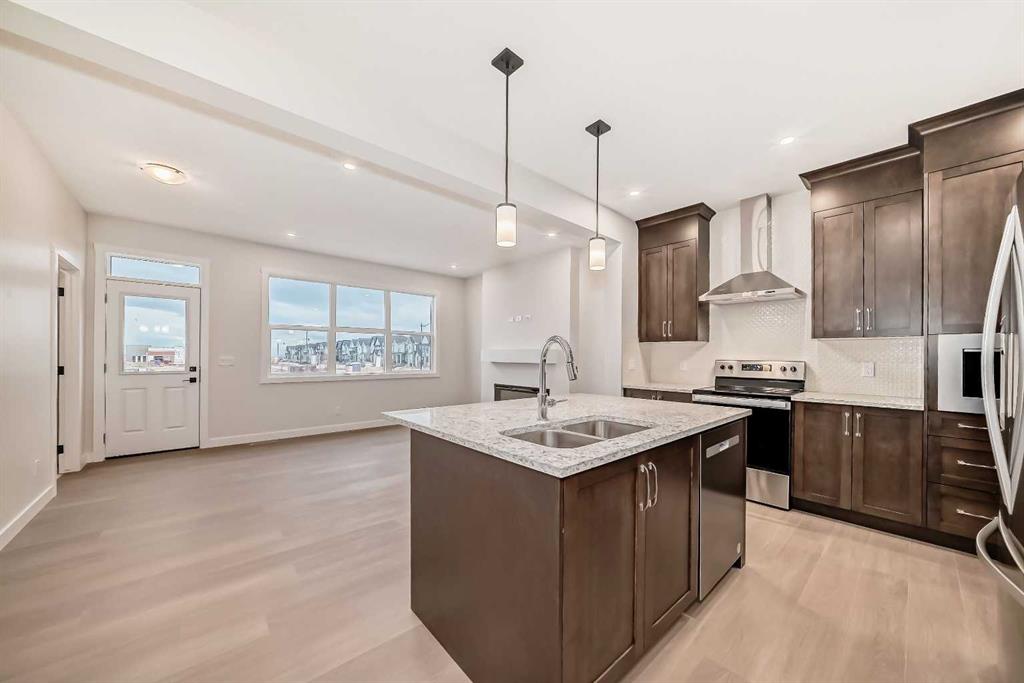$10,000 PRICE REDUCED :: |5-BEDROOMS| 4-FULL BATHROOMS|TWO MASTER BED ROOMS | MAIN FLOOR BED ROOM| FULLY UPGRADED KITCHEN| UPSTAIRS 4 BED ROOMS | UPPER LEVEL BONUS ROOM| BIG LAUANDRY ROOM | QUICK POSSESSION HOME | BASEMNET SEPARATE ENTRANCE| SPICE KITCHEN | FRONT ATTACHED GARAGE| HIGH CEILINGS |OPEN FLOOR PLAN | HIGLY UPGRADED HOUSE | BUILT IN APPLIANCES | MAIN FLOOR FULL BATHROOM| Welcome to a stunning residence waiting to be your next home in the amenity rich community of “HOMESTEAD”. This Genesis built The DELILAH MODEL WITH MODERN CRAFTSMAN elevation has almost $70,000 upgrades. Why book new and pay for all the upgrades, when you can get this 2024 built property that has everything already done for you. Main level features huge LIVING AREAS with Dinning Area along with Big Windows, Closet, Electric Fireplace, & Huge MUDROOM area that could be used as a small business office. Come check the WIDE & OPEN CONCEPT KITCHEN that comes with BUILT-IN APPLIANCES, BUILT IN RANGE, BUILT IN MICROWAIVE, CUSTOM HOOD FAN, UPGRADED COUNTERTOP & STYLISH ISLAND WITH Ceiling Height Extended Kitchen Cabinets creating soothing & cozy impact. The oversized windows on this level get tons of natural light. “SPICE KITCHEN” with sink and celling heights is the main beauty &attraction of the house. The main floor also features ONE BEDROOM and a FULL BATHROOM which can be used as a “Guest Bedroom” or it can offer convenience to the seniors including parents & grandparents. As you move to upstairs, will be greeted to an oversized DOUBLE DOOR primary MASTER BED ROOM and UPGRADED 5-PIECE ENSUITE FEATURING DOUBLE SINK, SIDE CEILING MI RROR, UPGRADED STANDING SHOWER that is EASY TO CLEAN TILE BASE along with huge walk in closet with shelves & big window. Going through hardwood flooring hallway, you will find another FULL WASH Room with water bath tub. ANOTHER MASTER BED ROOM with three huge size windows, upgraded attached bath room and huge walk in closet having bits own door greets you warmly. This level has 2 more BEDROOMS, EACH WITH ITS OWN CLOSET, 2 full bathrooms, LAUNDRY ROOM and an additional storage closet. Tons of upgrades that this property has, which makes this house unique: - upgraded elevation, 9’ ceiling in the basement, large windows, double vanities, Ceiling height cabinets in spice kitchen, upgraded fireplace, kitchen cabinets with riser, hood in the main kitchen, built-in refrigerator etc. The unfinished basement offers a separate entrance with 3 egress sized windows gives endless possibilities for customization of your personal touch. The front garage & driveway allow 4 vehicles to be parked at all times. On top of everything you will have a peace of mind for having Alberta New Home Warranty . This is a highly desirable community that has amenities such as 15 min drive to the YYC International Airport, 10 min drive to Cross Iron Mills shopping center with a potential future LRT station & access from Deerfoot and Stoney Trail.