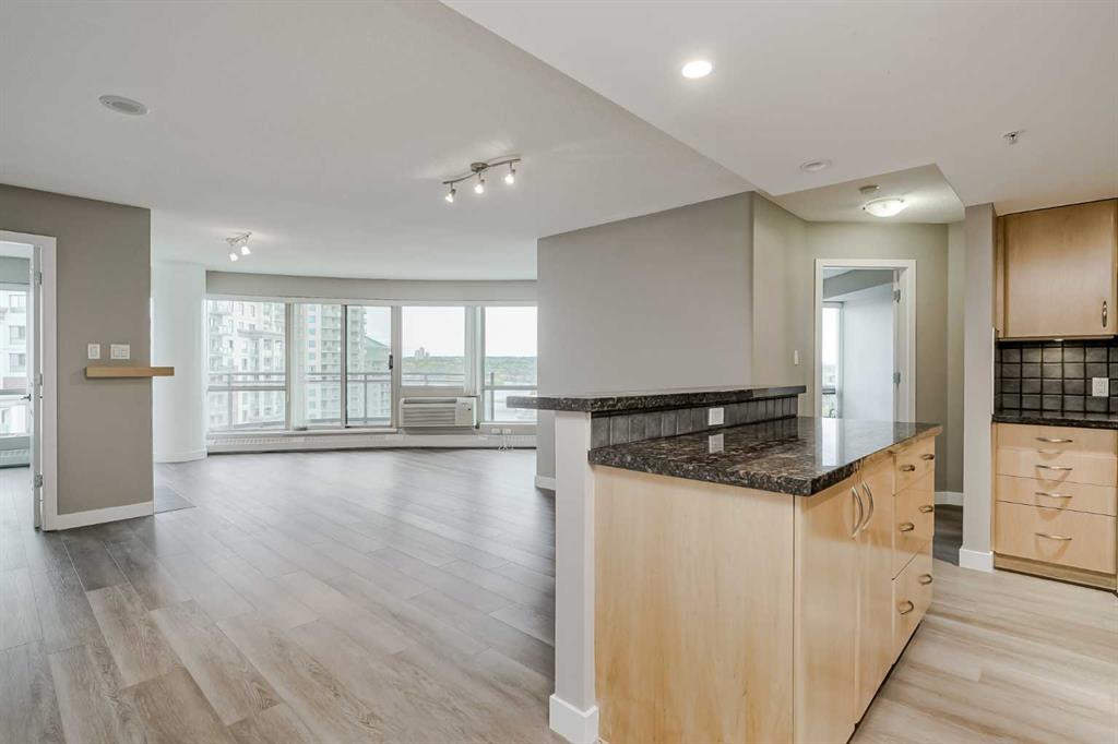 Public Remarks Perched on the 17th floor with jaw-dropping western views of the river and mountains, this newly refreshed 1035 sq ft apartment in Barclays at Riverwest is a modern urban oasis. Step inside an open-concept living space featuring brand-new luxury vinyl plank flooring and fresh paint throughout. The kitchen boasts sleek granite countertops, a spacious island with a breakfast bar, and ample cabinetry—perfect for the home chef and casual entertaining. The living room, bathed in natural light from floor-to-ceiling gallery windows, invites you to unwind by the gas fireplace or enjoy the breeze with the added convenience of an in-unit air conditioner. The primary suite is your private retreat, complete with a walk-through his-and-hers closet and a stylish ensuite. A well-appointed secondary bedroom is just steps from the main bathroom, offering privacy and comfort for guests or family. In-suite laundry, a dedicated storage unit, and TWO heated underground parking stalls make daily life a breeze. Plus, you'll enjoy many premium building amenities, including a heated pool and hot tub, a fully equipped fitness centre, recreation and party rooms, and secure bike storage. With concierge service on weekdays and evening security seven days a week, your peace of mind is assured. Located in the vibrant west end of downtown, you're just minutes from the LRT, scenic riverside paths, and the best of urban dining, shopping, and entertainment. This unit has it all—style, convenience, and unbeatable views. Don't miss your chance to live in one of the most sought-after buildings in the city!