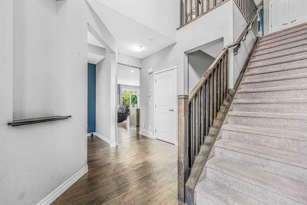 Welcome to your beautiful new home, located in the desirable community of Cranston Riverstone! Located less than 300m from the Bow River, this lovingly maintained corner lot home boasts over 2200 sq.ft of smartly developed living space. Once inside the large foyer, you'll notice a cleverly placed "pocket" office on your left, before heading down the hallway and your grand entrance to the open living room and kitchen. The living room, with many large windows to the rear, and additional side windows flanking the fireplace, allow for plenty of natural light. Your kitchen is huge, with a large quartz countertop island for prep space, tall over height cabinets, a full range of stainless steel appliances, and contrasting white cabinets to enhance that open kitchen design. And the large, sensibly placed walkthrough pantry, supports the kitchen and garage connection when doing those monthly grocery restocks. Upon completing your journey upstairs, you are greeting by another full living space and bonus room, already wired for sound for a family movie night. The primary suite offers a beautiful and bright ensuite, with a gorgeous shower, dual sinks, and a deep tub for soaking. The two secondary bedrooms are massive, so kids or guests will have plenty of space to grow or visit. The secondary bathroom flows with the rest of the theme as the cabinetry and counters match the ensuite and kitchen. And rounding off the second floor is the thoughtfully placed laundry, located between all of the bedrooms where it should be. Being in Riverstone means that you are connected to nature, as you are steps away from the bow river and the many paths and greenspaces just outside your door. And you have quick access to Deerfoot Trail, which means that you can be outside of the city in only minutes, or to the airport in less than 30. Here is your opportunity to get a premier lot and home in one of the most desirable communities in all of Calgary, so book your showing today!