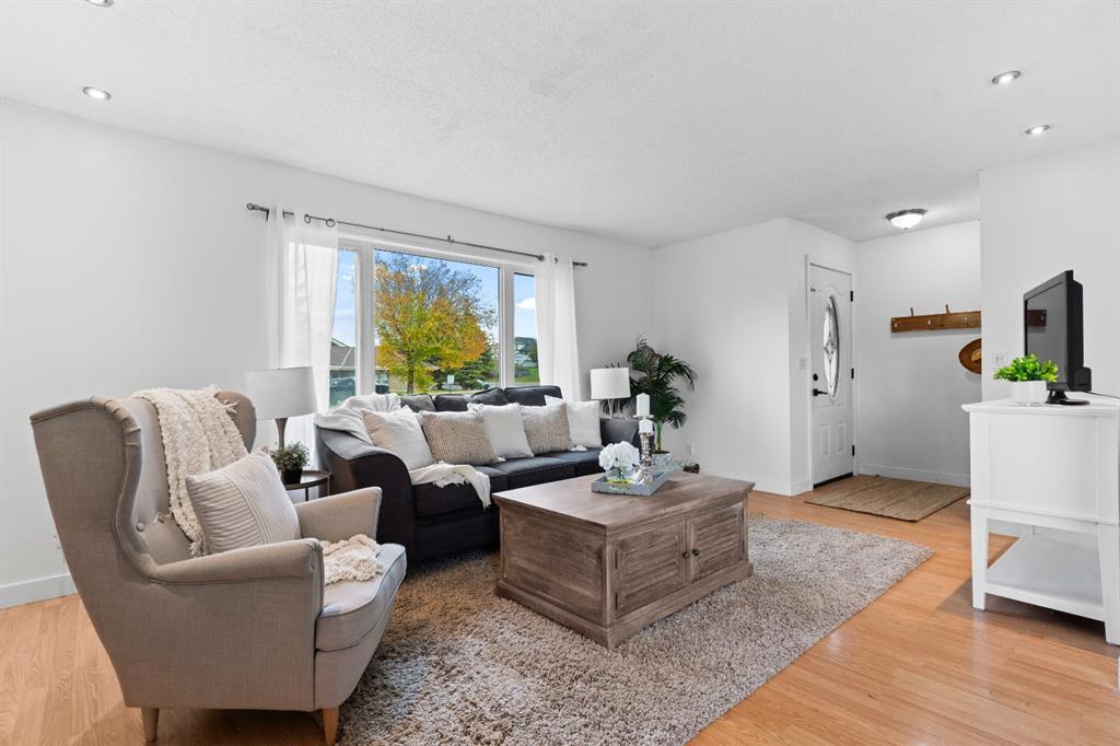 Discover a charming 4-bedroom, 2-bathroom bungalow nestled in the heart of Edgewater on Erin Drive, Airdrie. This home boasts a prime location, backing onto a school, park, and playground—ideal for families and those who enjoy outdoor recreation. This home is located on a corner lot directly across the road from Nose Creek Park and has views of the pond. Step inside to find a thoughtfully designed floor plan that offers both comfort and functionality. The bright and inviting living room is perfect for gatherings, with large windows allowing for natural light to flow throughout the space. The kitchen offers ample counter space and cabinetry, creating a perfect environment for cooking and entertaining. The primary bedroom, along with the other three bedrooms, provides plenty of room for relaxation and personal space. Two bathrooms ensure convenience for both residents and guests. The backyard is a private retreat, offering direct access to the nearby park and playground. Located close to schools, parks, shopping, and commuter routes, this bungalow combines a peaceful setting with the convenience of city living. Don’t miss the opportunity to make this home your own!