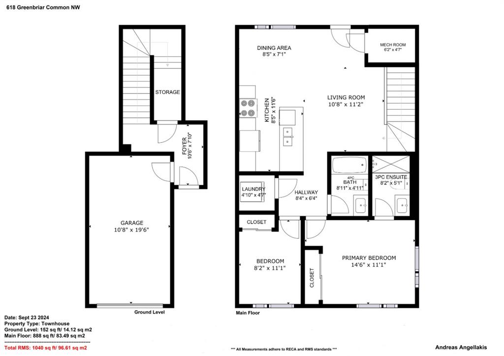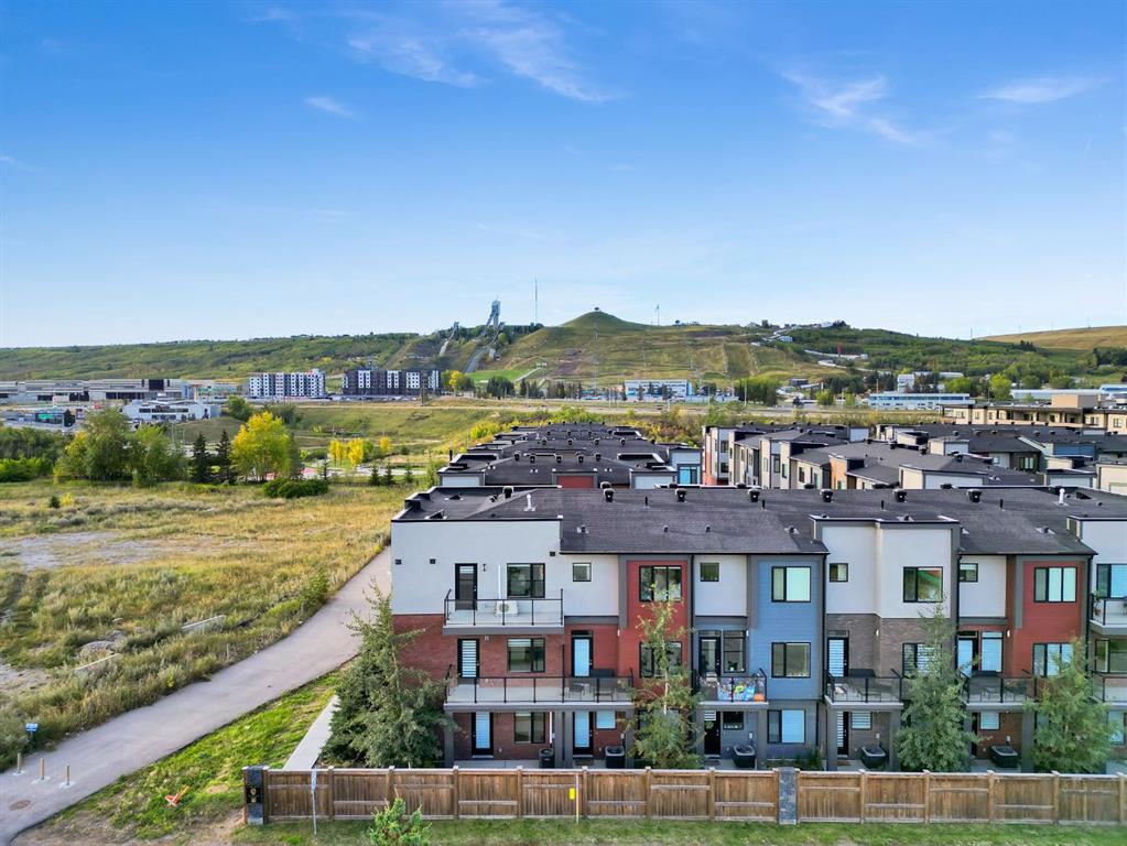 **Open House Event October 5th and 6th from 12:00pm-4:30pm** Welcome to 618 Greenbriar Common NW. This Corner Unit Top Floor Stacked Townhome offers luxury interior finishes with a designer curated open concept floor plan. This home offers a 2 Bedrooms, 2 Full baths design with over 1,000+ sqft of living, a single-attached garage and full builder upgrade package. This home combines the best of townhome privacy mixed with apartment condominium living. As you enter this home you’ll find the foyer with under-stair storage along with two flights of stairs up to your private top floor layout. Once on the upper level you’ll find an open concept living space with dedicated living and dining room, full and bight upgraded kitchen, and large glass panelled balcony for sweeping views into Bowness and the surrounding community. There were only a limited number of stacked models designed for the community and this home offers one of the rare opportunities to showcase full views and privacy into Bowness and established green spaces. This home configuration offers 2 bedroom, 2 full bath layout across one full floor with the primary bedroom providing additional corner windows with a ton of natural lighting containing South Backing and East Siding Exposures, a generous sized closet, and a full private ensuite with walk-in shower. This home was constructed with luxury in mind and provides vinyl plank flooring through Divines Floorings Voyage Line, Quartz Counter Tops Throughout, Upgraded Stainless Steel Gourmet Appliances, Upgraded Tile work in the Kitchen and Bathrooms, Upgraded Carpet and Underlay, Window Coverings, 9ft Ceilings Throughout, and A/C Unit (wall mounted). Within the community of Greenwich you'll also find access to walkable commercial shopping with the Calgary Farmers Market, Analog Coffee, Market Wines, and Mash Pizza. The developer has also set up established Bike and Walkings Trails, and also boasts two Playgrounds within the community along with an Off-Leash Dog Park! Located only 18 minutes from Downtown Calgary, 12 Minutes to the University/Foothills Hospital, and only 45 Minutes from the Mountains, come find what makes Greenwich a Premiere NW Community to call home.