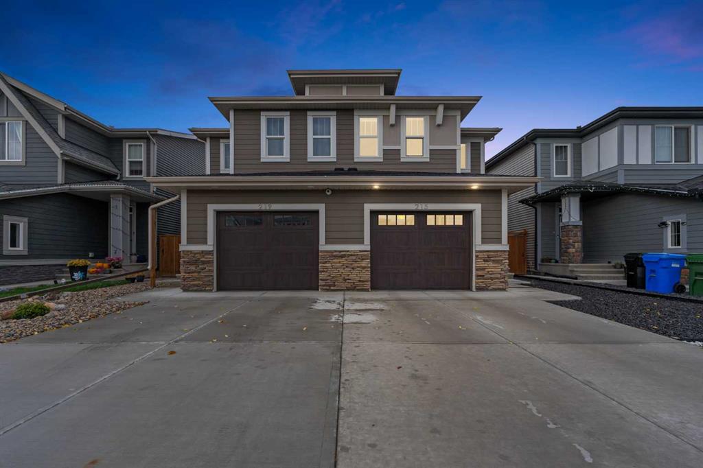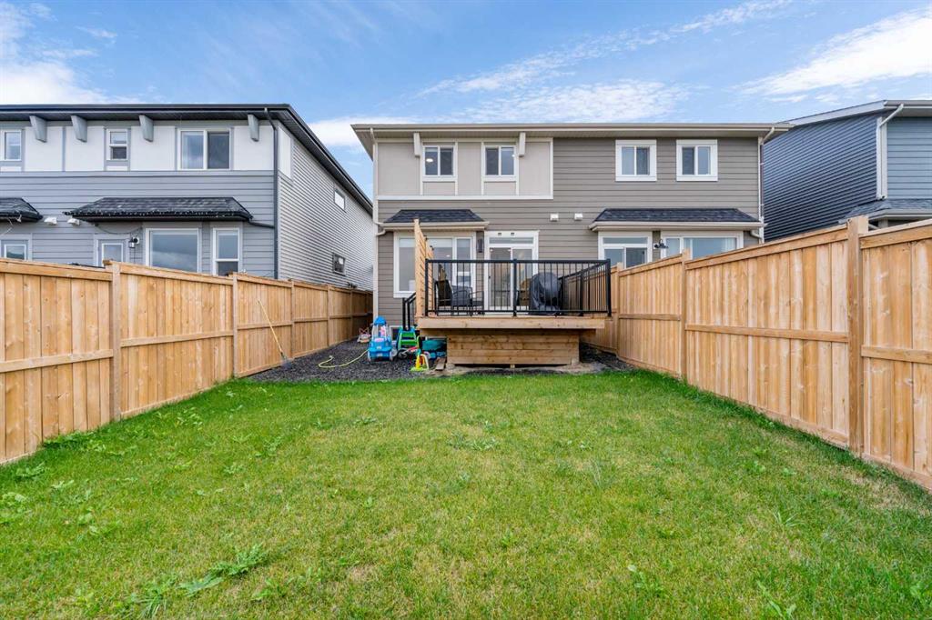 **New Price!**. UPGRADED HOME in Pine Creek with GREAT DOWNTOWN VIEWS from your living room and bedroom windows! And no neighbours behind. Fully fenced yard with low maintenance in the front yard and a huge deck at the back with views of downtown. This 3-bed, 2.5-bath semi-detached home comes with an oversized single front attached garage with built-in overhead storage shelf. Open and bright. Move-in ready. As you enter the main door you'll appreciate the high ceiling with a modern & functional floor plan, luxury vinyl flooring with an abundance of natural light throughout. The home comes loaded with UPGRADES: High-end quartz countertops throughout, TOP of the RANGE black SS appliances, modern lighting fixtures, LVP floor, zebra blinds, huge windows, neutral colour and more. The open-concept kitchen boasts Quartz countertops with an island eating bar, plenty of cabinet space, a pantry and dining area -- adjacent to the huge living room, perfect for entertaining. Upstairs, you'll find 3 generous bedrooms plus a den, perfect for working from home. The spacious primary bedroom features a walk-in closet and 3pc ensuite. There's also a 4-pc bathroom conveniently located near the other two bedrooms, providing easy access for family and guests. A laundry room with LG washer & dryer and shelving completes this level. The basement comes with a large window and rough-in for bathroom, is unspoiled and awaiting creative ideas. Built with durable Hardie board siding, this home is as sturdy as it is stylish. Located near parks and surrounded by serene walking & biking trails, it offers easy access to Stoney Trail and McDonald Trail, providing the perfect mix of urban convenience and neighbourhood charm. Book your showing today and explore all the possibilities this exceptional home has to offer.