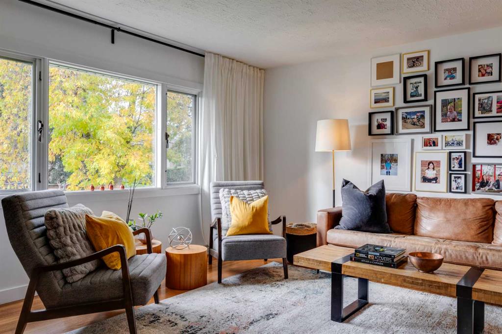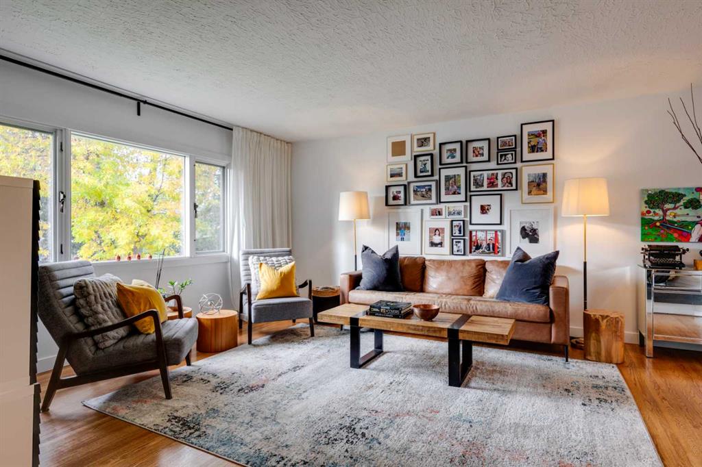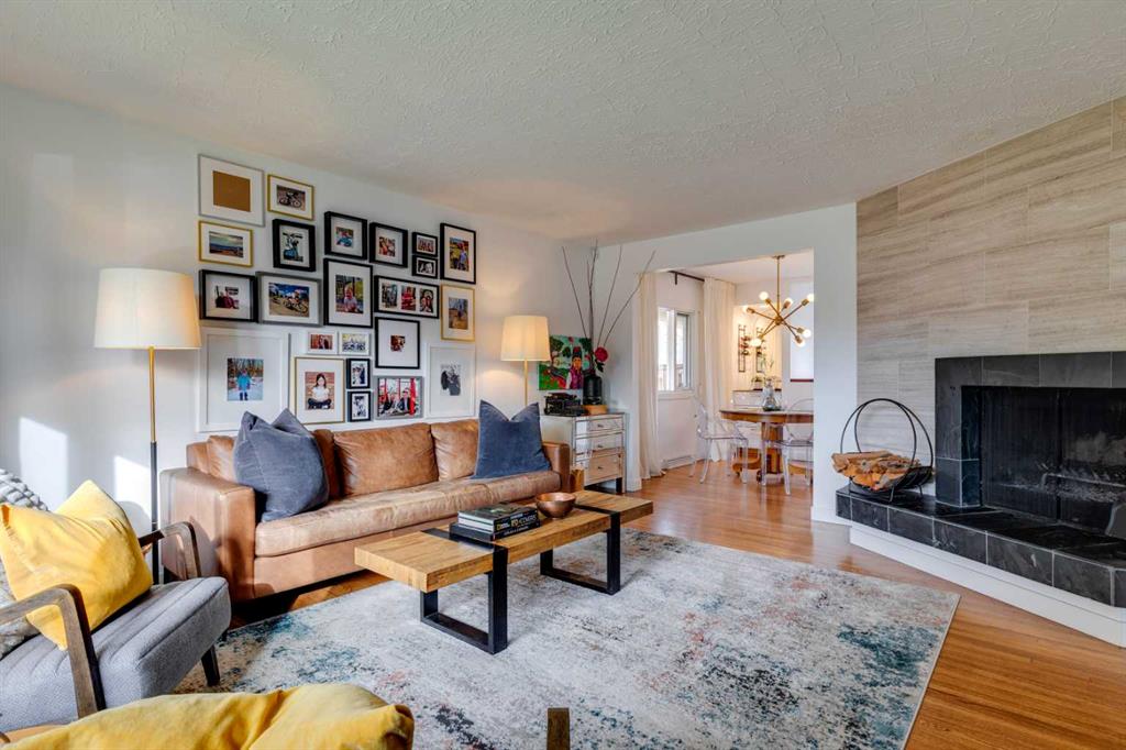 Exceptional bungalow in the quiet heart of desirable Rutland Park. Situated on a large and private 50’ x 120’ lot with lovely landscaping, mature trees and surrounded by other well-kept homes. This is a great family home offering 2234 square feet of development with 4 bedrooms, 2 full baths and 2 fireplaces. Extensive renovations and upgrades, both inside and out. The large living room feels warm and inviting with neutral oak hardwood flooring and a rare wood-burning fireplace with contemporary mantle. Bright dining space with built-in storage. The open kitchen is fitted with white-modern-cabinetry, updated lighting, stainless appliances, stone counters, 2 pantries for additional storage and a set of french doors out to the huge rear deck. 3 spacious bedrooms on the main with hardwood floors and updated closet doors. Main bath features subway tile, a soaking tub, new vanity with quartz top, new mirror and lighting. Fully developed down with large and multi-purpose family-recreation room with cozy gas fireplace and media wall, plus an additional space currently shown as fitness area. Generous lower bedroom connects to a modern 3-piece bath with subway tile, walk-in shower and marble-topped vanity. Exterior features include: stone sidewalks, steps and rear patio, huge and sunny deck, grassed play space, full fencing and an oversized double garage (finished) with workbench. Newer roof, windows and infrastructure. Easy access to amenities including the Marda Loop Village and major transportation routes. Don’t miss this great home!