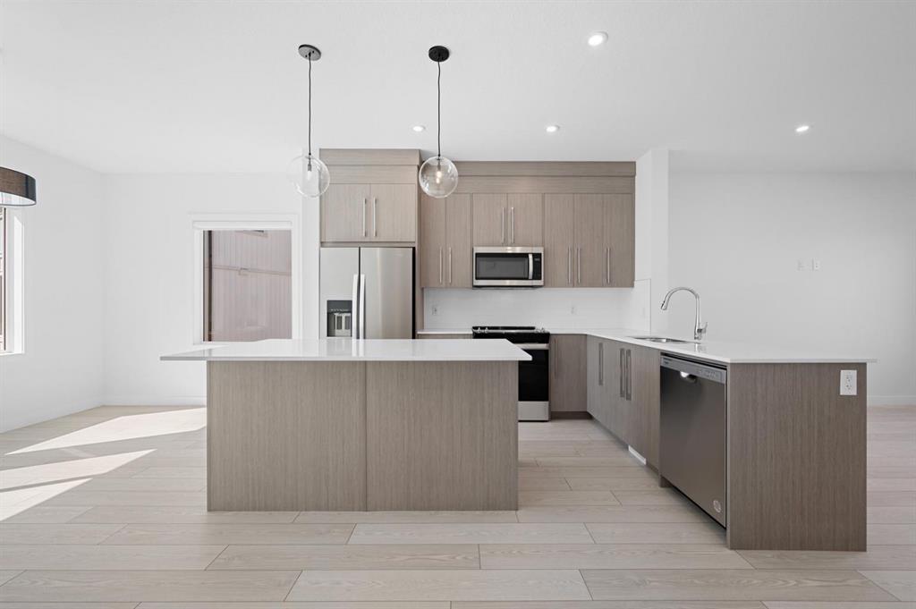 Welcome to Aberdeen Townhomes new 4-bedroom home, perfectly situated in the vibrant and expanding community of Chelsea. This dynamic community offers the best of modern living, with nearby playgrounds, scenic pathways, and shopping all within a dynamic and welcoming neighbourhood. This exceptional townhome is meticulously designed for comfort and style, featuring 4 Bedrooms and 2.5 Bathrooms. The versatile main-floor Bedroom is ideal for guests or a home office. The open concept floor plan showcases a Gourmet Kitchen equipped with Full-Height Cabinetry, Soft-Close Doors and Drawers, a Stainless Steel Appliance package, and an Eat-up Bar with Quartz Countertops, perfect for casual dining and entertaining. A spacious pantry provides additional storage. The Kitchen seamlessly transitions into the Dining area and Great Room, which opens to a private Balcony, perfect for relaxing or entertaining. Premium Vinyl Plank flooring runs throughout the living areas, complemented by High Ceilings that create an open and airy atmosphere. The upper floor offers a serene Primary Bedroom with a generous Walk-in Closet and a 4-piece Ensuite. Two additional Bedrooms, a 4-piece Main Bathroom, and a convenient upper-floor laundry area complete this level. Bright, airy, and move-in ready, this Townhome invites you to embrace the Truman lifestyle and live better. Don’t miss your chance to make this remarkable townhome your own! Be sure to explore the photo gallery of a similar home to get a glimpse of the lifestyle that awaits you.