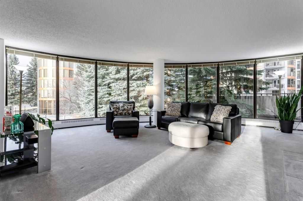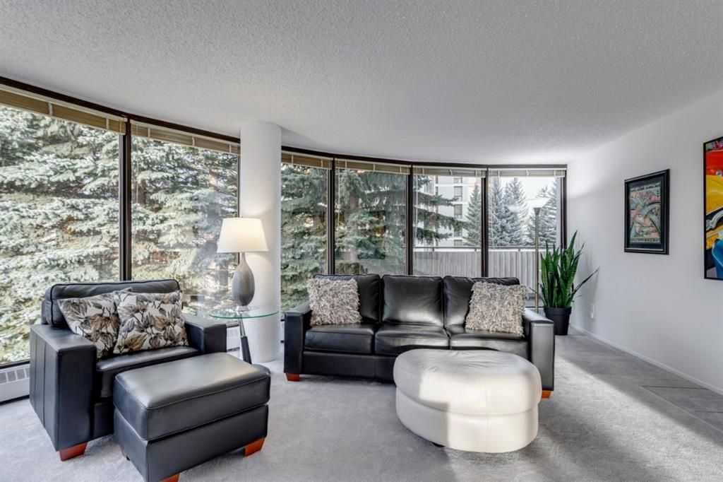 Public Remarks This bright and spacious 1367 SQ FT 2 bed 2 bath condo is absolutely stunning! The living room and dining area feature 12 large floor to ceiling windows for abundant natural light. The bedrooms are large and include a master en-suite and a walk in closet, as well there are 2 spacious storage rooms. This property is centrally located close to downtown, shopping, walking paths and tremendous access to mountain escapes. The kitchen features new appliances and luxury vinyl plank flooring, virtually all of this stunning condo has been recently painted. Enjoy a large deck with lovely views of the fabulous flower gardens below. The condo also features 2 parking spaces, one indoors and the other an outdoor stall. This condo is full of amenities, with 2 elevators, ample visitor parking, an indoor garden, access to a sauna and steam room as well as a guest room. Odyssey Towers has a 55 year and above age requirement.