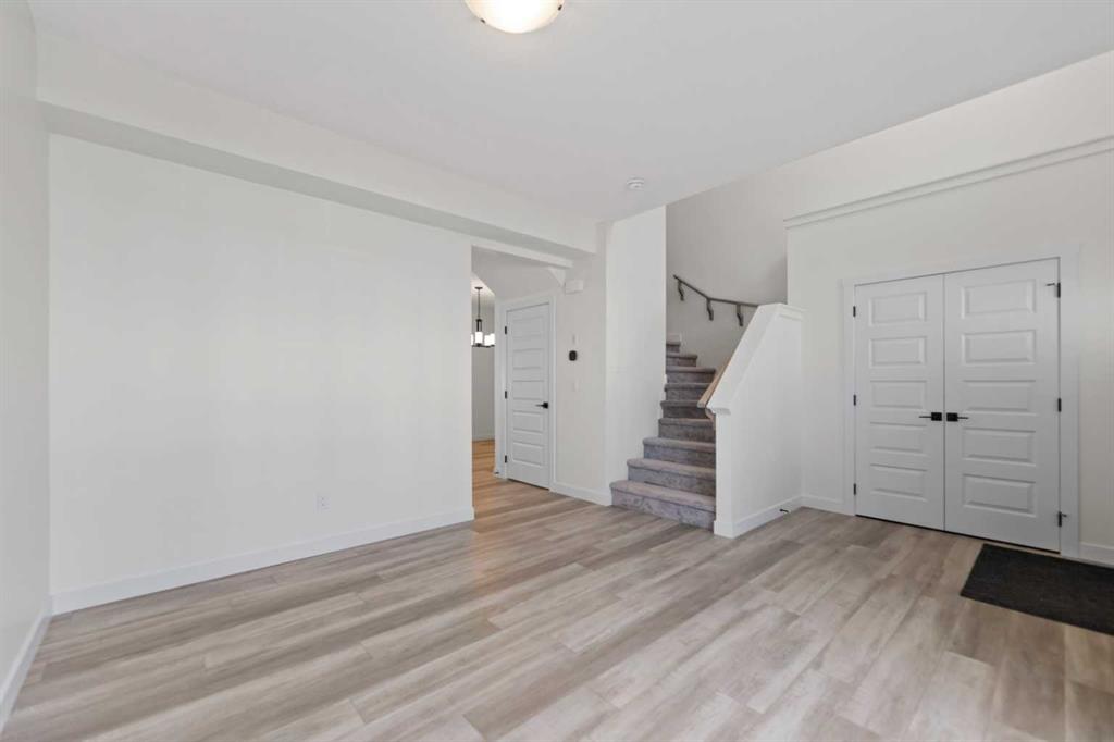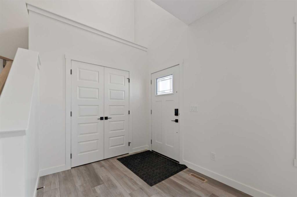 Discover Your Dream Family Home in Bayview, Airdrie! Welcome to this brand-new, beautifully designed 3-bedroom, 2.5-bath detached home offering 1,592 sq. ft. of modern living in the highly sought-after Bayview community. Known for its parks, playgrounds, and family-friendly atmosphere, Bayview provides a perfect blend of community charm and modern convenience. Situated just 10 minutes from CrossIron Mall and 15 minutes from Calgary International Airport, this home offers the ideal balance of comfort and accessibility.Upon entering, you’ll be greeted by a bright and welcoming foyer that flows into a spacious front living area, ideal for family gatherings or hosting guests. The main floor is thoughtfully designed with 9 ft knockdown ceilings, recessed pot lights, and luxury vinyl plank flooring, creating a modern and open feel. The north-facing kitchen is the heart of the home, featuring full-height cabinets with risers, sleek quartz countertops, and stainless steel appliances, including a hood fan and built-in microwave. The large kitchen island offers extra seating and ample space for meal prep, while the generously sized pantry keeps the kitchen functional and organized. The open-concept layout flows seamlessly into the dining area, perfect for both everyday meals and entertaining. A convenient half-bath completes the main floor.Upstairs, the master suite offers a tranquil retreat with a walk-in closet and a luxurious 4-piece ensuite that includes a walk-in shower and quartz vanity. Two additional bedrooms, both with large windows and ample closet space, share a full 3-piece bathroom. The upper level also includes a laundry area, adding functionality and ease to everyday living. The unfinished sunshine basement presents endless possibilities for future development, with space for two additional bedrooms and a rough-in for a bathroom. Large windows ensure that the basement remains bright and welcoming, making it ideal for customization.Outside, you’ll find a laned backyard that includes a gas line, perfect for BBQs and outdoor gatherings. A double car concrete pad, ready for a future detached garage, offers both parking and storage convenience. This home is move-in ready and located near Bayview Park, playgrounds, shopping, and other essential amenities. Bayview’s family-friendly environment and convenient location make it one of Airdrie’s most desirable communities.As a special bonus, the builder is offering a complimentary Smart Home Package. This package includes a smart thermostat for efficient climate control, a video doorbell, smart locks, all of which can be controlled remotely for added convenience and security.Don’t miss your chance to own this beautiful 3-bedroom home. Call today to schedule your viewing and make this home yours!