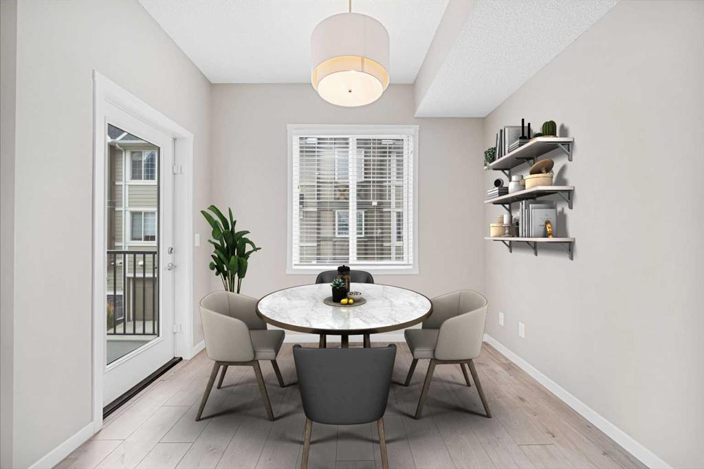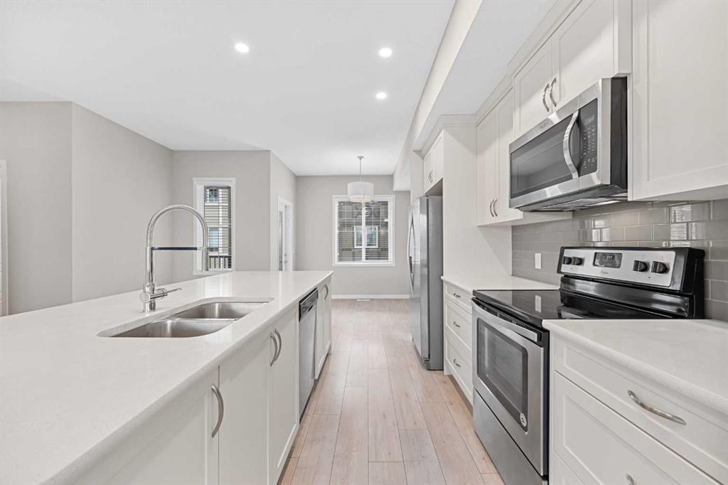 One of the best priced townhomes in all of Nolan Hill! Pride of ownership is apparent in this well appointed unit in a great neighbourhood. Featuring three storeys, a large open floor plan with an abundance of light from the large windows of each floor, this townhome is sure to tick all of the boxes for families, empty nesters, or young couples starting out. This townhome features 3 large bedrooms, 2.5 bathrooms, with the addition of a large den/office on the lower floor. This home also includes the convenience of an oversized double attached garage, and an abundance of visitor parking a short walk away. As you enter, you are introduced to a large entrance with the den and utility room with plenty of room. The open concept main level features nine foot ceilings and gives a feeling of grandeur in combination with the abundance of natural light. The kitchen features stainless steel Whirlpool appliances, and has an immense amount of space, with large cupboards, a good sized pantry. Warm, light grey laminate planks flow seamlessly through the main floor, making cleaning a breeze. The primary bedroom boasts tons of space, a features a large walk-in closet, four piece ensuite bathroom with dual vanity. No more sharing your sink! The other two bedrooms are flooded with natural light from the large windows, have an extensive amount of closet space. This townhome is walking distance away from many parks, green spaces, playgrounds and a scenic lake. Close to Sarcee trail, Shaganappi trail, and Stoney Trail, all necessary amenities are within a few minutes drive. This house shows great pride of ownership and the only thing that it is missing is you!