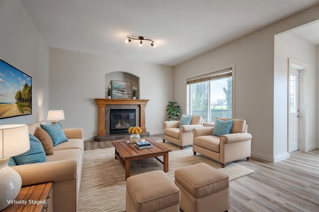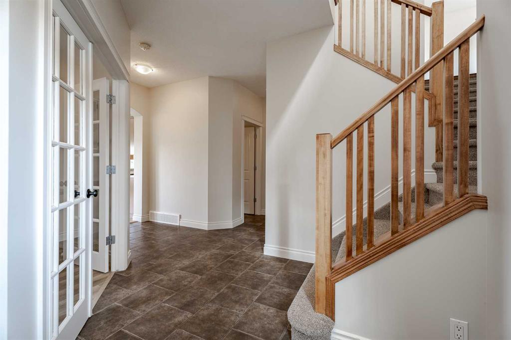 Discover this absolutely stunning McKee built home on a HUGE PIE SHAPED LOT, offering over 2200 sq. ft. of upgraded living space that’s sure to impress! Beautifully renovated with fresh paint throughout makes it show 10/10 move in ready. With central A/C, hardwood & laminate flooring (no carpet anywhere!), and elegant 9 ft. ceilings, this home is designed for both comfort and style. The open-concept living area features a gas fireplace and a chef’s kitchen with quartz countertops, UPGRADED Stainless STEEL APPLIANCES including a GAS STOVE, pot & pan drawers, and beautiful maple cabinets accented with upgraded crown moulding. A walk-through pantry leads to the large mudroom and double attached garage for added convenience. Upstairs, unwind in the bonus room or retreat to the primary suite, complete with vaulted ceilings, a spa-like ensuite (soaker tub, large shower, quartz counters, walk-in closet), plus two additional spacious bedrooms and another full bathroom. The lower level gives you a head start as it is partially finished. Situated on a huge pie lot, fully fenced and landscaped, this home offers outdoor living at its best. Located in a prime SW Airdrie community of COOPERS CROSSING! … near shopping, pathways, schools, and parks. Book your showing and come see this home sweet home!