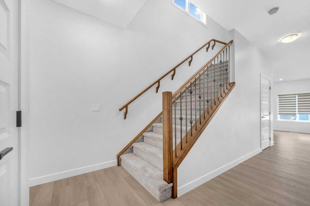 Live in Airdrie's most desirable & sought-after neighborhood, Bayview! Less than 50 meters to the park/playground! A newly built home with plenty of room for the whole family. Enjoy the bright main floor with spacious living and dining open space. The kitchen has sophisticated finishings with quartz counters, upgraded stainless-steel appliances like chimney hood fan, built in microwave, a 3 door ice maker refrigerator, and soft-close drawers that reach to the ceiling. Off the kitchen is the large mudroom, and walk-through pantry with direct access to the Double attached Garage. Upstairs, you will find 3 large bedrooms, bonus room and convenient second floor laundry, At the front of the house is the generously sized Master bedroom, which has its own ensuite with double sinks and a walk-in closet. The two additional bedrooms, both a good size, provide more room for a growing family, 4-piece bathroom and an upper laundry room complete this upper level. This home has QUARTZ COUNTERS everywhere, 9’ knockdown main floor ceilings, designer lights, including pot lights, upgraded backsplash and craftsmanship. Overall, there are tons of upgrades in this home. undeveloped basement has rough ins for plumbing and awaits your creative ideas for future development and potential for secondary suite upon city approval. There's no separate entrance to the basement, but it can be easily done at a reasonable cost as the seller has already checked with the contractor and can provide you with the contractor number. Book your showing today with your favorite Realtor!!