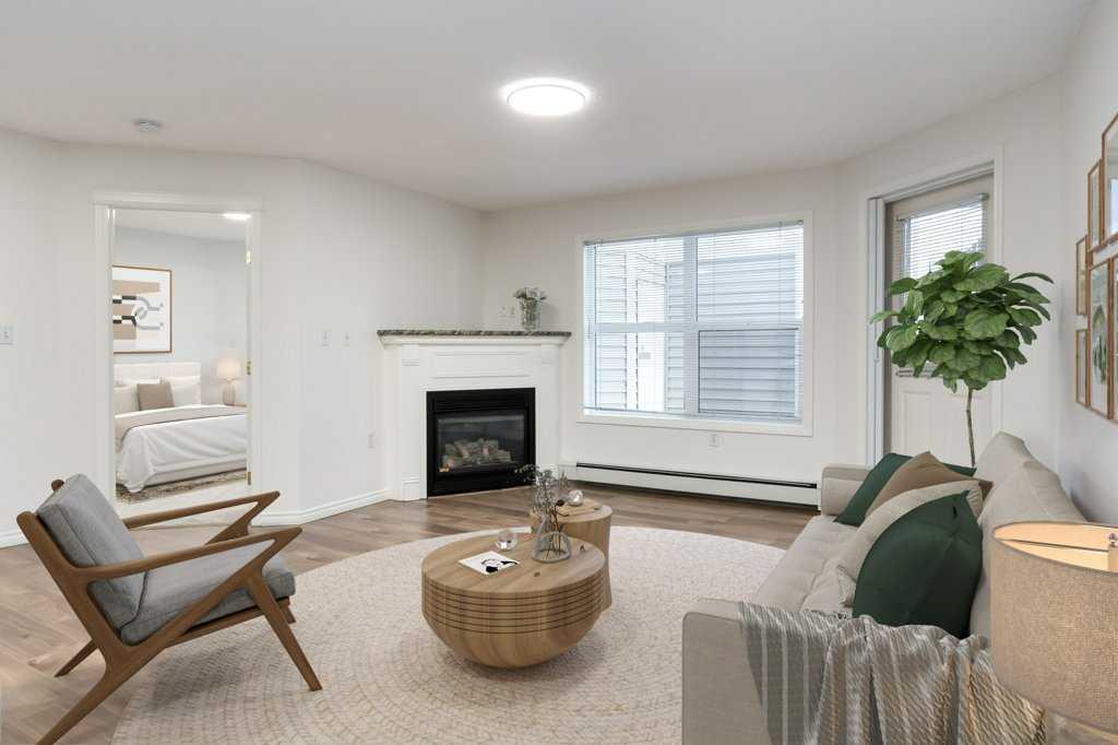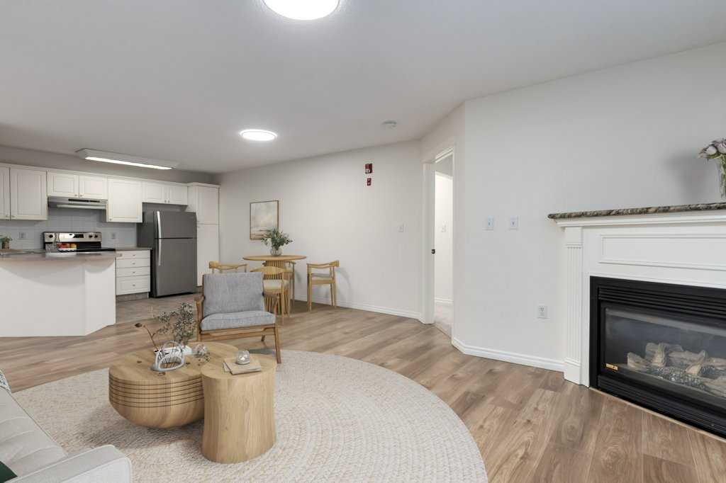 Welcome to this stunning 2-bedroom, 2-bathroom condo, one of the largest units available in the building. This rare find features a bright, open-concept layout with huge windows that bring in abundant natural light and provide scenic views of the surrounding green space. Step inside to a spacious entrance foyer that opens up to a large living area, ideal for relaxing and entertaining. The functional kitchen boasts ample cupboard and counter space, brand new appliances , and a sizeable island with a breakfast bar. Adjacent to the kitchen is a dedicated dining area, perfect for meals with family and friends. The primary bedroom is spacious and private, complete with a walk-in closet and a 3-piece ensuite bathroom. The second bedroom is well-sized and is accompanied by a 4-piece main bathroom. The cozy corner gas fireplace in the living room adds warmth and ambiance to the crisp winter evening. Enjoy the large, covered balcony with a gas hookup and an outdoor storage locker—a wonderful, private space to unwind, surrounded by green space. The condo includes a secure, titled underground parking stall and access to a convenient car wash bay. The building itself is well-maintained with wide hallways, guest seating areas, and ample visitor parking right out front. Located in the heart of Huntington Hills, The Pavillions is just steps from Nosehill Park and a short walk to schools, transit, shopping plazas, medical centers, daycare, a gas station, walking trails, and more. Don’t miss this chance—call today to book your private viewing!