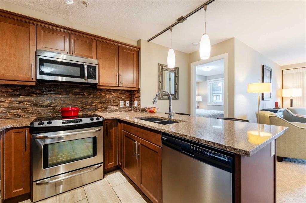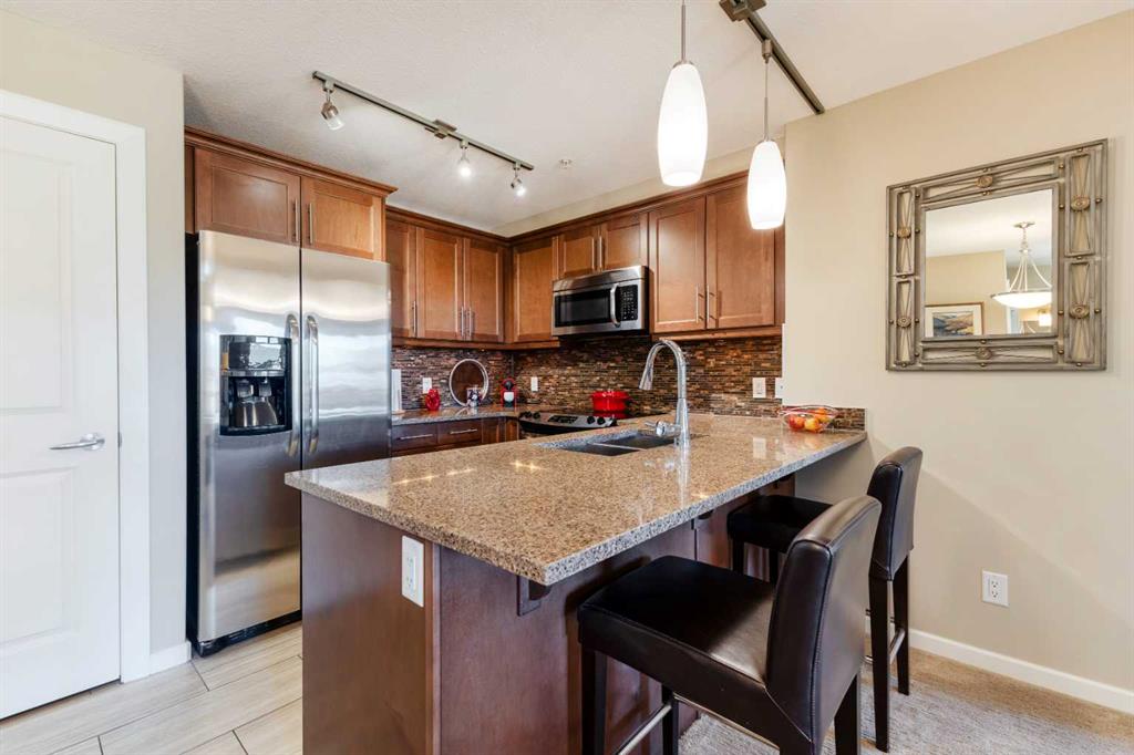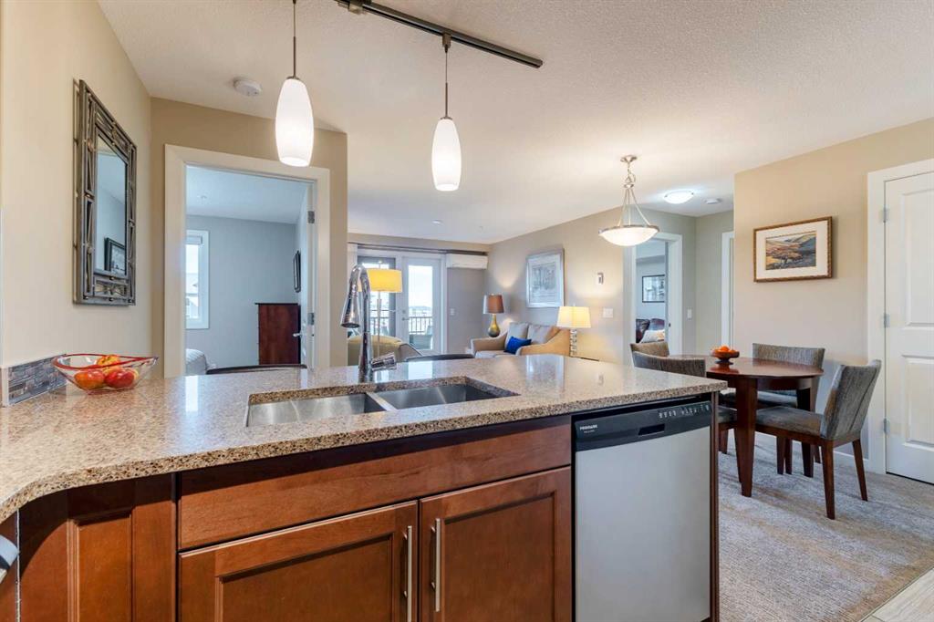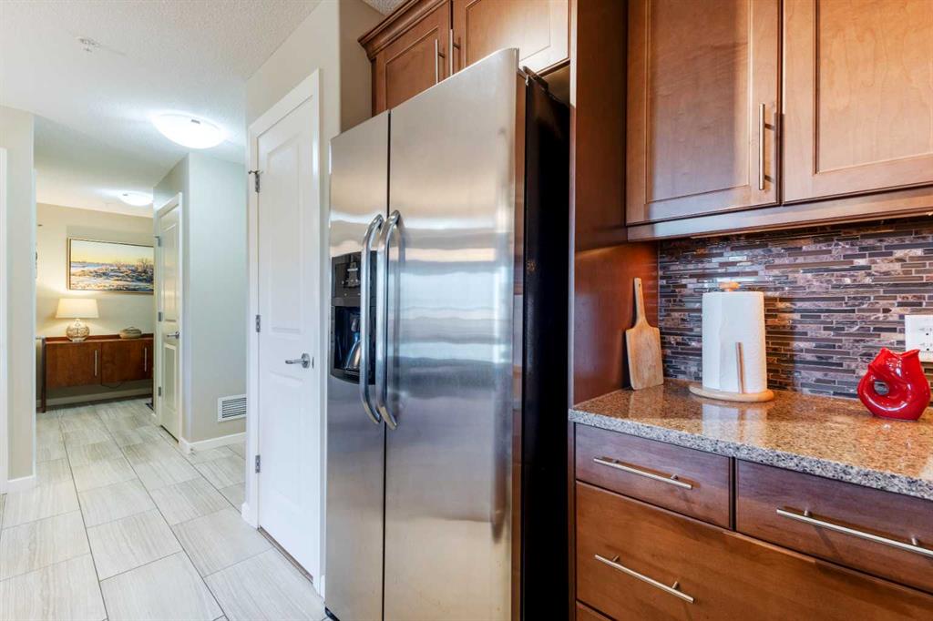 Move in time for Christmas! This immaculate, no-pet, no-smoking home feels brand new & is ready for its next owner. The open-concept layout features a modern kitchen with a convenient breakfast bar, granite countertops, under-mount sinks, a pantry, & plenty of cabinets & counter space. The spacious living room & dining area flow seamlessly, creating the perfect space for entertaining. Step out onto the large, Northwest-facing balcony, complete with a gas BBQ hookup—ideal for year-round grilling. This home offers two bedrooms, separated by the main living areas, with custom closet organizers for optimal storage. The primary bedroom includes a walk-through closet for added convenience as you access the full ensuite bath. Working from home will be a breeze with the den or use it as your personal library. With plenty of additional storage throughout, air conditioning, & a single titled underground parking stall, this home has it all. Don't miss out on the chance to enjoy the holidays in your beautiful new home!