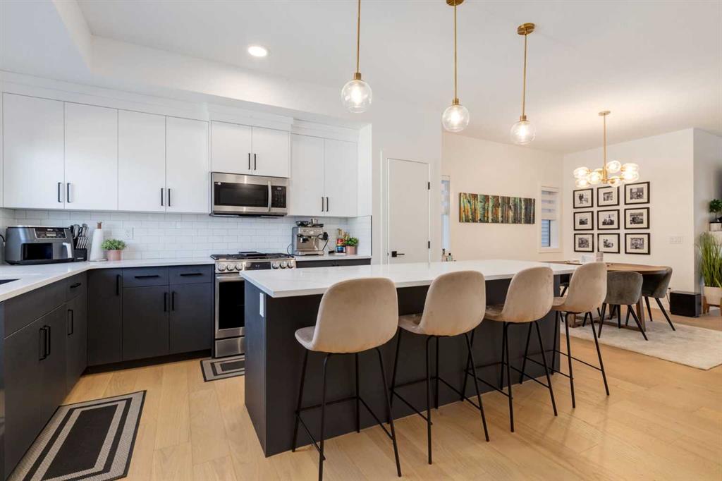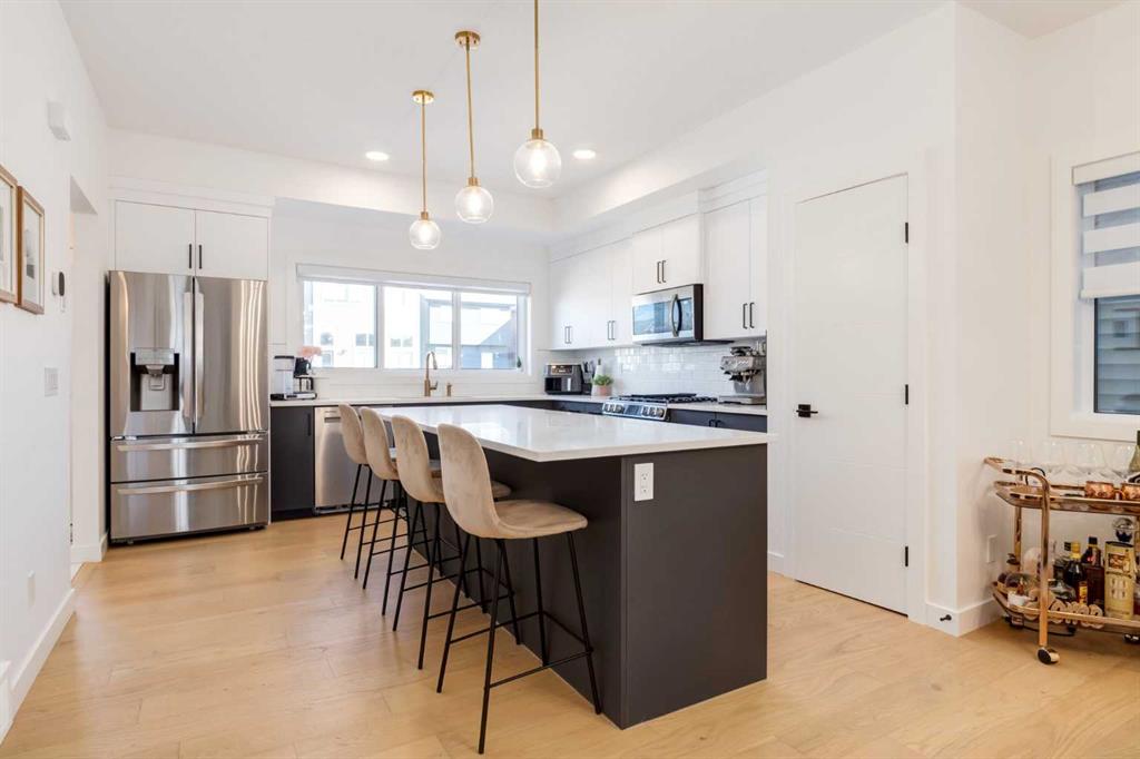 Welcome to this nearly-new 3-bedroom, 2.5-bath home in the beautiful community of Legacy. Having been lived in for just over a year, this home feels fresh and modern, offering a pristine living environment. With no neighbors directly across the street and stunning views of a serene pond, the wide, open street offers plenty of parking and a peaceful atmosphere. Step inside to discover an open and bright layout, perfect for both entertaining and everyday living. The kitchen boasts stainless steel appliances, including a gas range and an upgraded fridge with a water and ice dispenser. Upstairs, you'll find three ideally sized bedrooms and two full bathrooms. You'll appreciate the ample storage options, including a large walk-in laundry room and spacious walk-in closet in the primary bedroom. Rejuvenate in the primary ensuite complete with a soaker tub and plenty of counter space, and enjoy the pond views from your bedroom windows. The home is filled with thoughtful upgrades such as engineered hardwood flooring, 10-pound underlay carpet for added comfort, upgraded lighting, tile, and air conditioning to keep you cool year-round. Many additional features have been thoughtfully taken care of, including window coverings and landscaping. A unique pocket office near the entry makes working from home a breeze, offering both privacy and convenience. Located close to schools, grocery stores, and local restaurants (don't miss local favorite, Deagla!), This home combines luxury, convenience, and comfort in one perfect package.