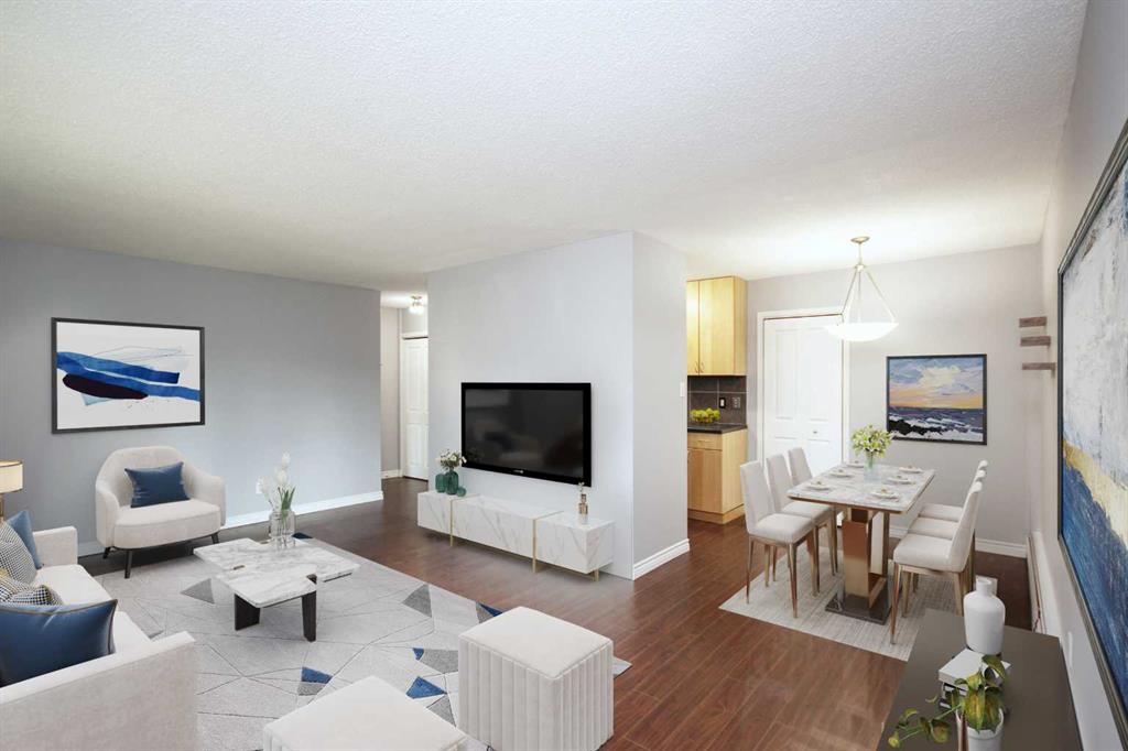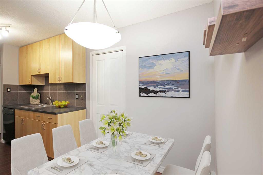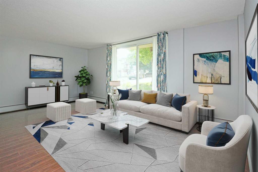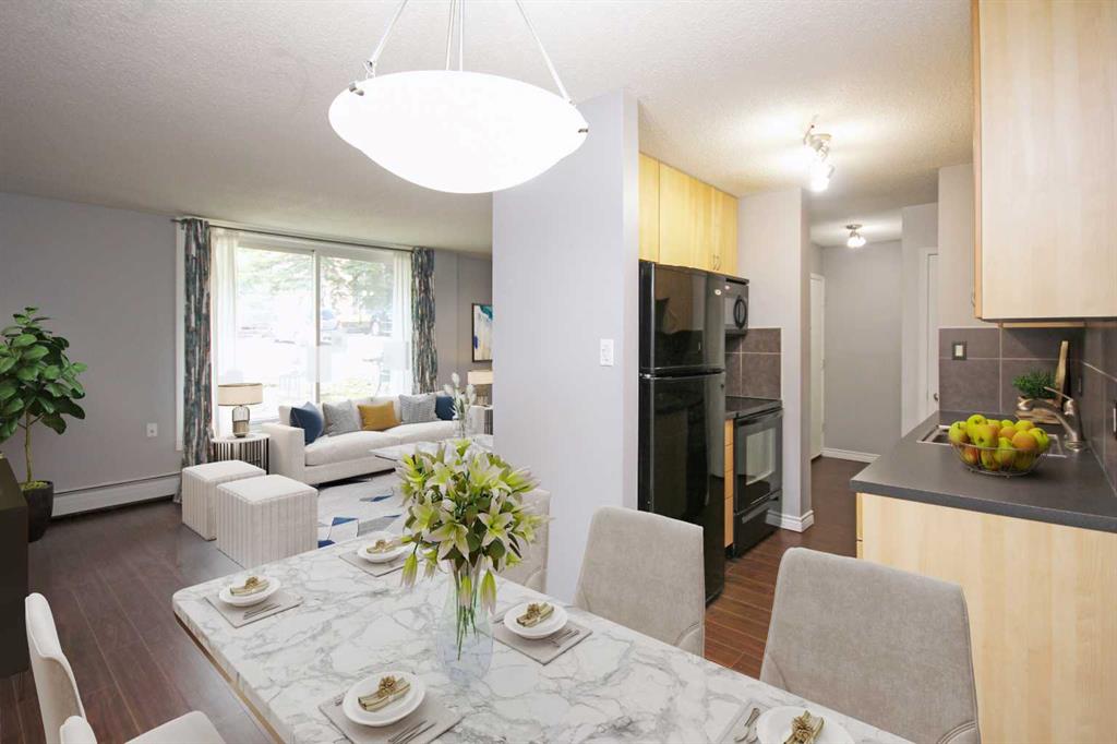 Nicely UPDATED 1 bedroom unit within walking distance to shopping, restaurants, C-Train and more. Such a great location! As you enter your new home, you are greeted by laminate throughout. The galley style kitchen is a nice size with UPDATED cabinets and appliances. Great for creating your culinary desires. Dining area is a nice size for dinner gatherings which overlooks the large living room. There’s a pantry/storage room off to the side. Your large living room serves as the focal point of the home. Relax and entertain inside or outside on your west-facing patio. Down the hall is an UPDATED 4 pc bathroom and VERY LARGE master bedroom. The unit boasts a 2nd entrance which you will find the laundry right outside the door. The inside courtyard is a pleasure for quiet relaxation time in a secluded oasis. The windows, patio doors and siding were all upgraded in this concrete building. The unit is very quiet because it is in a concrete building. Assigned parking, #618, and visitor parking on the south corner. Dogs are approved on a case by case basis. If you’re a first-time buyer or an investor, it doesn’t get much better than this.