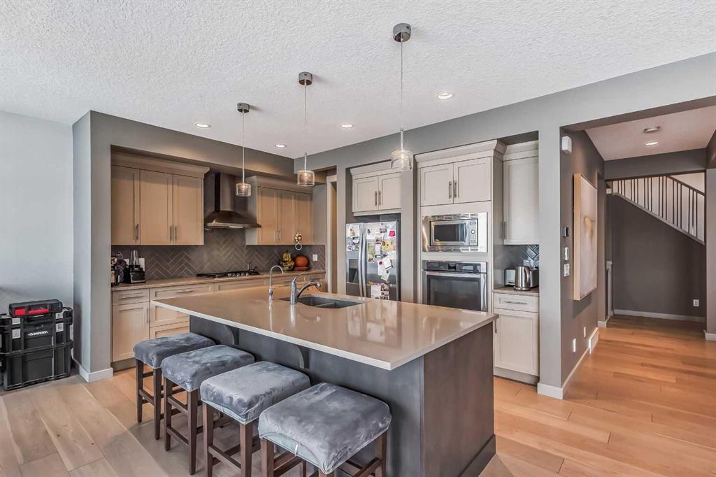 Visit this impressive home in a cul-de-sac location, backing onto the Mahogany Wetlands! This family home boasts over 4,100 square feet of developed space, featuring an expansive, open plan perfect for entertaining. Ideal for a large family, the home offers 4 bedrooms on the upper level and an additional one in the lower, walkout basement. The included Kinetico Water System provides excellent water quality in the home. Kitchen features a counter top gas range, stainless steel appliances, a large island with double sink and slide outs in the cabinets. The fully finished basement, professionally developed in 2019, adds to the allure and makes a great place for family guests, senior family members or teenagers to stay. Stay warm during chilly days with the aid of two furnaces. A full deck spanning the back of the home provides ample space to relish the natural settings. For those rainy days, a large, covered patio area from the walkout basement becomes an ideal space for kids to play. Garage is wired for EV recharging. Recent work, totaling over $15,000 has been undertaken to address issues found during a pre-inspection. Bring your own inspector to confirm the quality and excellence of this remarkable home. Work from home in the secure office space in the basement.