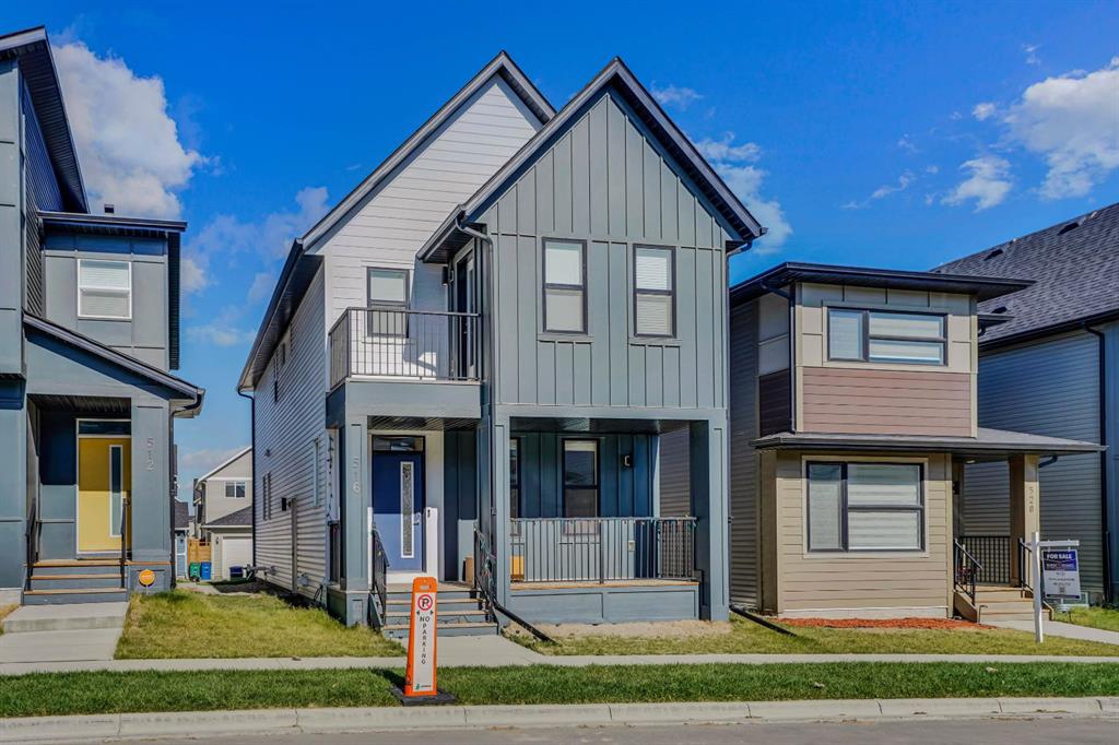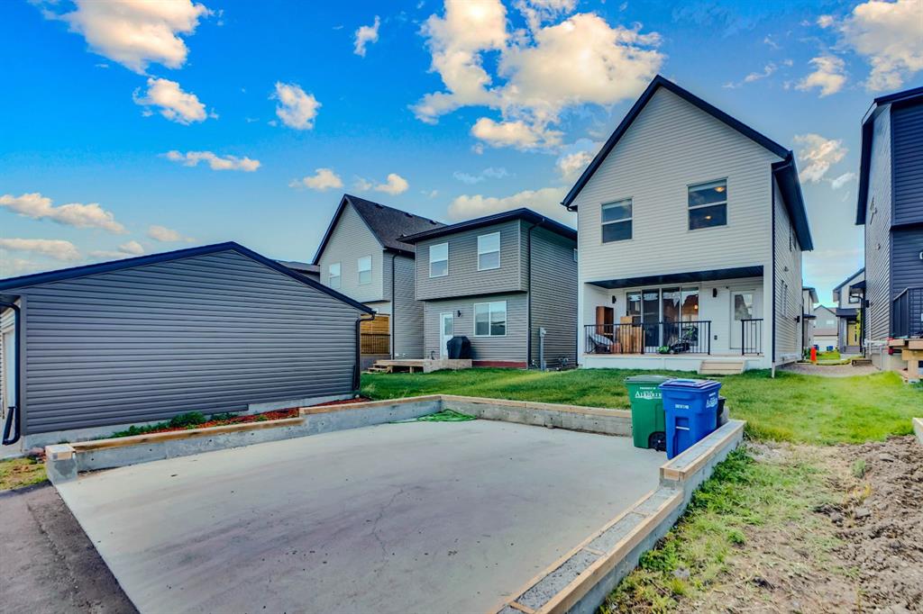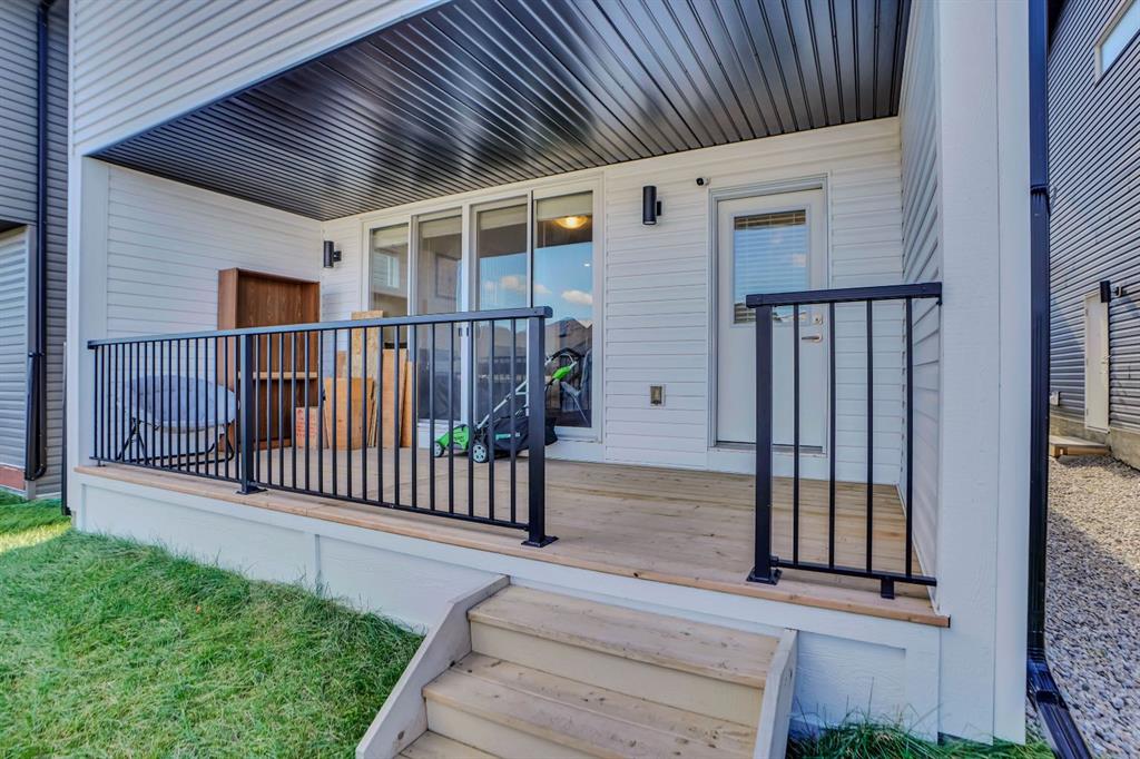 Welcome to this beautiful 2-storey home located in the serene community of South Point, Airdrie. This home comes with a separate side entrance, 9' ceilings on the main floor and basement, along with a spacious front porch and backyard deck with a natural gas line for BBQ hook up. This stylish detached home features 3 bedrooms, 2.5 bathrooms, and a total living space of 1,860 sq. ft with sleek modern finishes and an abundance of natural light. The main floor includes a spacious living room, an open-concept kitchen with quartz countertops, upgraded appliances, a large island, and a spacious dining area. The upper level features a luxurious primary bedroom with a vaulted ceiling, a 4-piece ensuite, a spacious walk-in closet, and an attached balcony overlooking the beautiful neighbourhood. There are two additional bedrooms, another full bathroom, and a versatile bonus room. Custom blinds have been installed throughout the home. This home is close to all amenities including a school, shopping centre, and easy access to Deerfoot Trail. Don't miss the opportunity of owning this beautiful home!