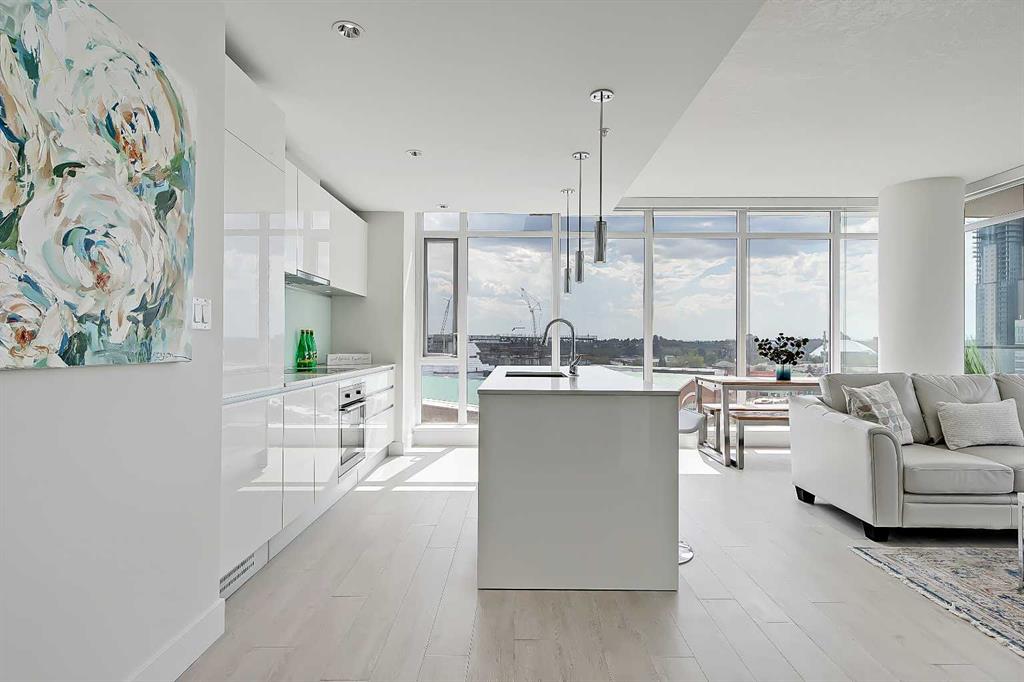 Celebrate the end of 2024 with the ultimate gift to yourself— A FULLY-FURNISHED AND EQUIPPED residence that will exceed your expectations! Welcome to the Guardian South Tower, an architectural marvel that graces the heart of downtown Calgary, standing tall as the city’s premier residential address. Embrace the extraordinary in this corner unit with floor-to-ceiling windows offering unparalleled vistas of the city skyline, the Saddledome, and the majestic mountains. Step into an oasis of luxury within this 2-bedroom, 2-bathroom haven, complete with tandem parking for your convenience. The open-concept design floods the space with natural light, creating an ambiance of warmth and sophistication. Immerse yourself in a culinary haven, featuring bright white cabinetry, quartz countertops, and state-of-the-art stainless steel appliances, including an induction cooktop, built-in oven, refrigerator, dishwasher, microwave oven, and garburator. The centre island, crowned with pendant lighting, invites gatherings and culinary creations. This residence is not just a home, it’s also an excellent investment opportunity, fully furnished with contemporary pieces that elevate the living experience and attract guests from all over the world, resulting in a fully-booked AIRBNB, averaging $3,000/month in income. Ready for immediate rental, it presents an exceptional opportunity, where both short-term and long-term options await. Location takes centre stage, placing you in the pulse of the city, where every convenience is at your doorstep. Whether you seek entertainment, culinary delights, or business connections, the Guardian South Tower is your gateway to it all. Elevate your lifestyle in 2024 with this extraordinary dwelling—where luxury, convenience, and investment potential converge.