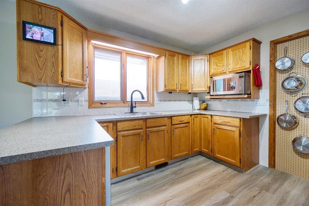 This spacious property offers quick or immediate possession, making it perfect for those looking to move right away. Located in a desirable neighborhood, it’s just minutes from schools, a rec center, and shopping. The home features an oversized heated two-car garage that can fit up to three vehicles, with RV parking complete with a 30-amp hookup. Situated on a corner lot, the property offers ample parking with a paved alley for added convenience. The backyard boasts a privacy fence and a relaxing hot tub. The upper floor has 3 bedrooms, a kitchen/dining room, living room, and a large bathroom with laundry. The lower floor includes a 2-bedroom (illegal) suite with a den, kitchen, living room, bathroom, and laundry—ideal for a mother-in-law (illegal) apartment suite or a mortgage helper.