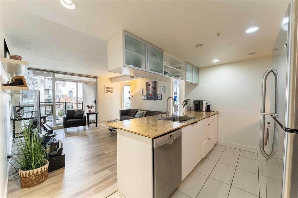 Welcome to your dream urban retreat in the heart of the Beltline! This exceptional 8th-floor corner unit in the Stella building offers the perfect blend of modern living and unbeatable views. With coveted south and east exposures, you'll be greeted by an abundance of natural light throughout the day, highlighting the spacious layout and creating a warm, inviting atmosphere. Step inside to discover floor-to-ceiling windows that frame breathtaking views of the park and city skyline. The open-concept living area flows effortlessly into a modern kitchen featuring granite countertops, a breakfast bar, and stainless steel appliances—perfect for entertaining or a cozy night in. The primary bedroom is a sanctuary of its own, with expansive windows on two sides providing stunning vistas and a serene ambiance. A walk-in closet and direct access to the spa-like bathroom, complete with a soaker tub and separate shower, offer a luxurious retreat. The second bedroom is equally impressive with dual closets and plenty of natural light, making it an ideal guest room or home office. The east-facing balcony is the perfect spot to enjoy your morning coffee or relax after a long day, with stunning sunrise views. Additionally, this unit comes with an oversized underground parking stall and a generous-sized storage unit, offering extra convenience and value for city living. With in-suite laundry, a pet-friendly policy, and premium building amenities—including a fitness center, steam room and 24/7 concierge/security—this condo provides everything you need for a convenient, comfortable lifestyle. Location is everything, and this unit delivers. You're steps away from the vibrant 17th Avenue, the Design District, local parks, and top-notch dining and shopping. Plus, with a Walk Score of 98, bike lanes, and easy access to transit and C-train routes, commuting and exploring the city is a breeze. This is more than just a home—it's a lifestyle. Don't miss your chance to experience it. Contact your agent today for a private viewing!