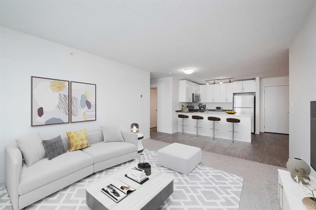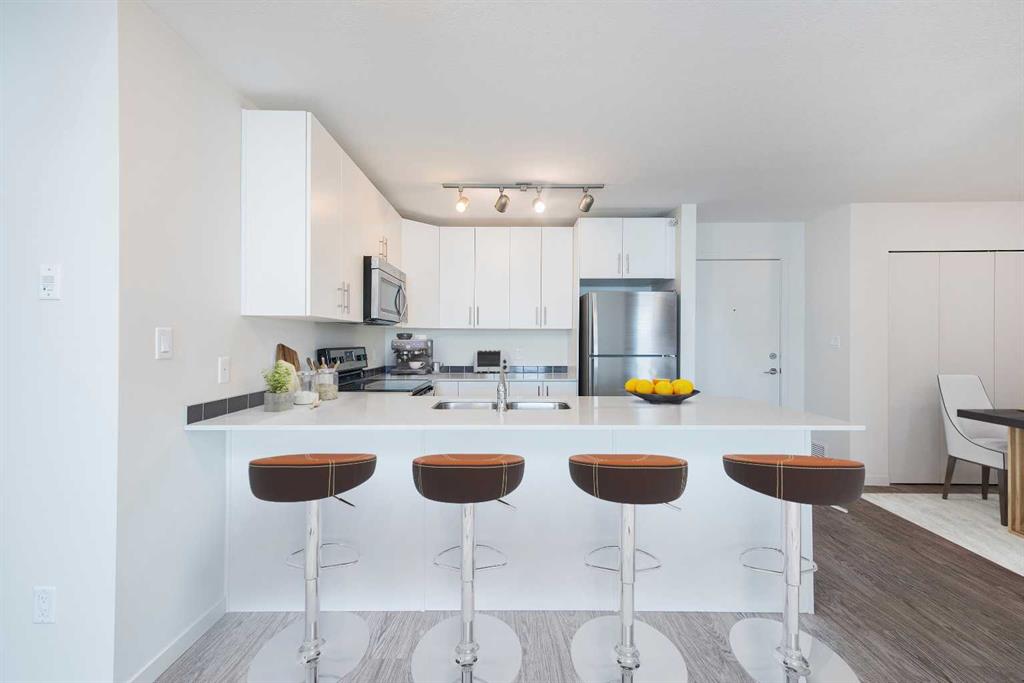 This one will not last! Third floor CORNER condo with 2 PARKING STALLS!!!. This condo shows beautifully and offers thoughtful upgrades such as quartz counters, stainless-steel appliances and vinyl plank flooring. An open layout featuring 2 bedrooms and 1 full bath as well as in-suite laundry. McCall Landing is an energy efficient building, which also features a fitness centre, recreation room, dog run, garden and bike storage area. Enjoy the strong sense of Community that McCall Landing has to offer! Close to transit, schools, shopping and all amenities. Make Skyview Ranch home today! Listing photos are from a different yet similar unit.