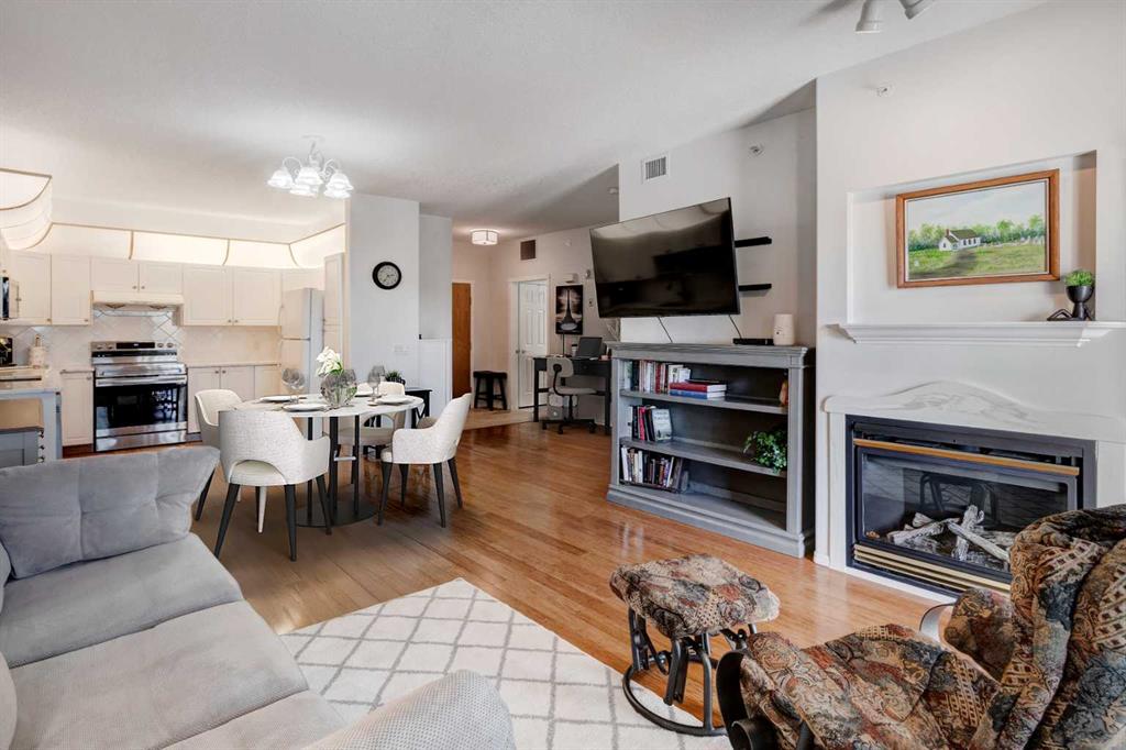 OPEN HOUSE SUNDAY, NOVEMBER 17 1:30-3:00pm Start living the low-maintenance lifestyle at Sierras of Country Hills, a 55+ adult living community, where comfort and convenience converge. This bright top-floor unit boasts living spaces bathed in natural light, complemented by hardwood floors and fireplace. Start your day in the beautifully detailed kitchen, featuring sleek marble countertops and ample space for culinary pursuits. The adjacent living area is equipped with premium window coverings and Spectra Light Film, ensuring year-round comfort and tranquillity. With unit independent air conditioning, you're always in control of your environment. Unwind on the spacious, recently renovated balcony, showcasing breathtaking views of Nose Hill. Entertain with ease, thanks to a convenient gas line for barbecues. Enjoy access to a range of amenities, including a pool and hot tub, library, fitness center, coffee/conversation lounge, games room including billiards and shuffleboard, party room, and workshop. Regularly scheduled activities will keep your social calendar filled. Appreciate the added convenience of a spacious laundry room, a storage room and an assigned parking space in the heated underground garage. Condo fees cover electricity, heat, water, sewer, and trash removal, freeing you to focus on the things that matter most. With this blend of serenity and vitality, the property defines adult living at its best.