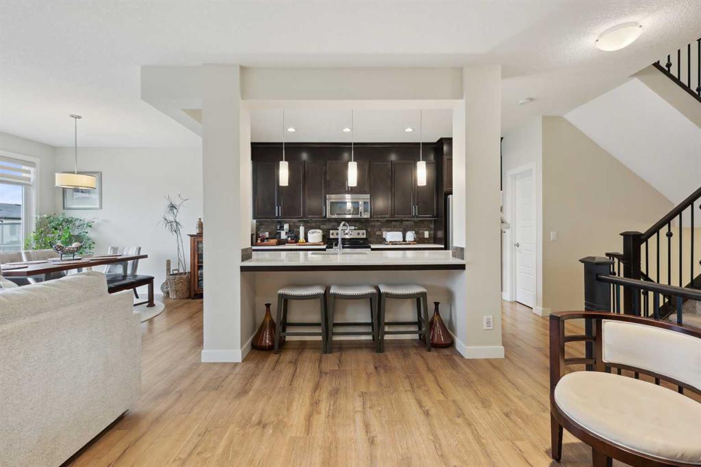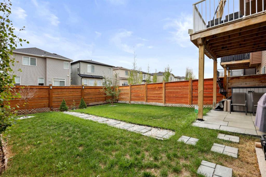 ** QUICK POSSESSION ** You'll be amazed at how attractive this bright open floor plan is! This 3 bedroom family-approved, custom-designed walk-out basement home is squeaky clean inside. You will love the 2155+ sq ft of living space. It has a great location in a quiet street and is only steps away from the shopping, parks, transit and pathways. An east-facing backyard features an upper oversized rear deck with a gas line and a lower concrete patio, which is fully fenced and landscaped. The yard will invite you and the kids to enjoy this prominent homesite. The main living areas are very bright & open, with high 9' ceilings in the kitchen/dining/living room & foyer. The foyer is very roomy and finished with open railings and tile flooring. Upstairs offers 3 bedrooms, a bonus room with an 18' x 5' front balcony, a big laundry room, and two full bathrooms. The basement is an unspoiled (860 SF) space that accommodates another family room, bedroom, bath, and storage area. Many updates include exterior aluminum deck railing, roof - shingles, mechanicals, paint, flooring, skylights, kitchen appliances, quartz countertops with an under-mount granite sink, and modern décor. These upgrades include a gas fireplace & a full mantle, an oversized front double 22 x 20 attached garage with full concrete driveway & extra street parking. Plus, there are many more details to view on your visit of this fine home!